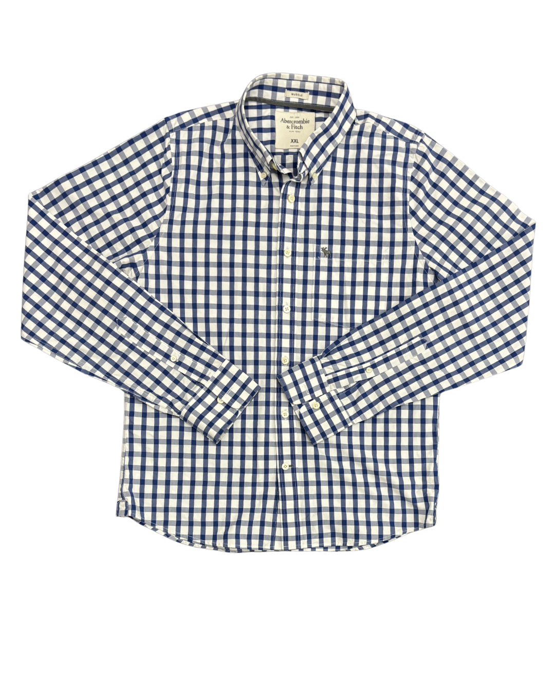Product form Abercrombie & Fitch Blue Gingham Muscle Fit Shirt - L Measurements (inches)Pit to Pit: 22Length: 28Brand Size: XXL Dhs45.00 Quantity Add to cart Washed & Ready to WearFree shipping on all orders above 100 AEDNext day delivery