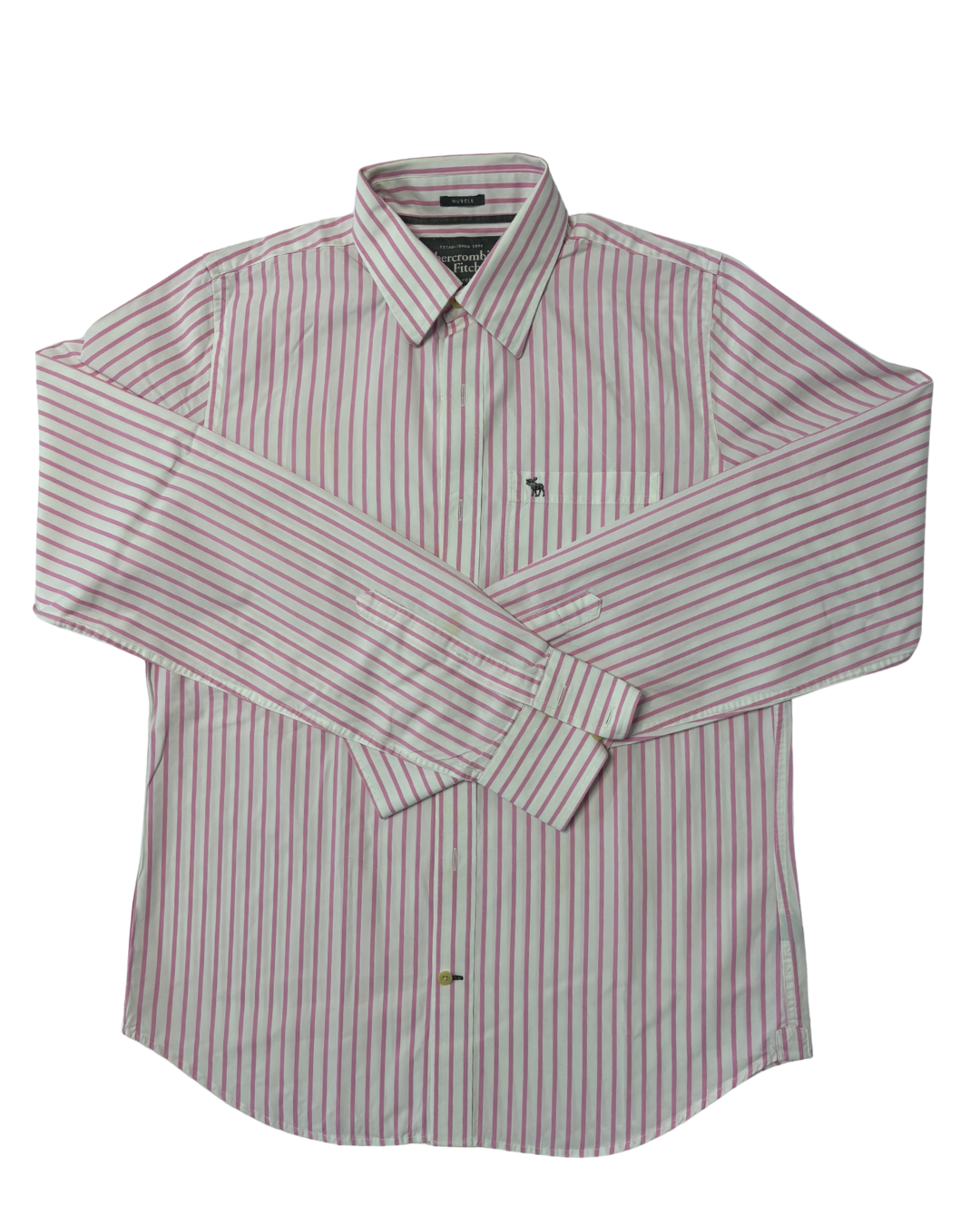 Abercrombie & Fitch Muscle Fit Pink Striped Dress Shirt - L
