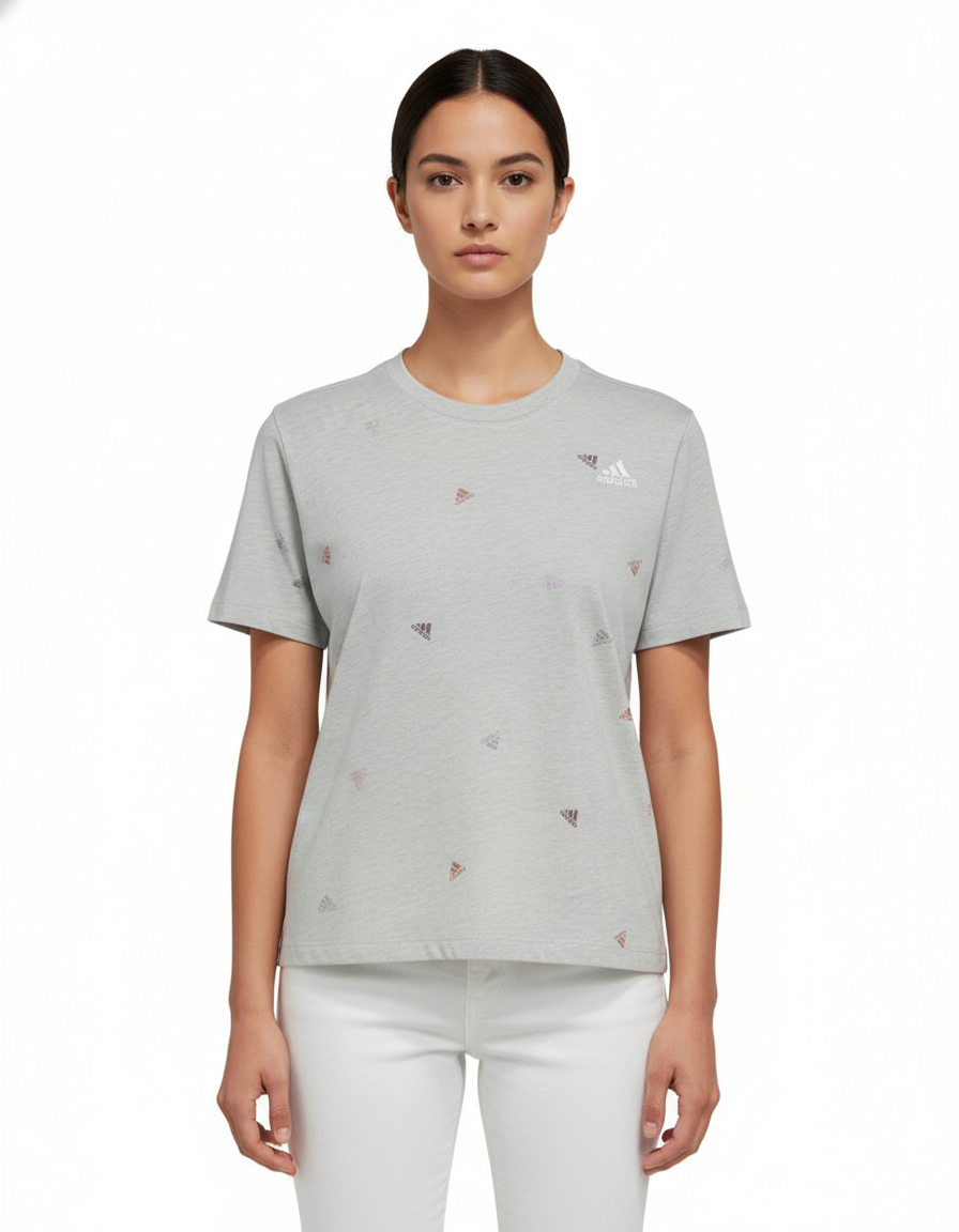 Adidas Loose Fit Multi-Logo Light Grey T-Shirt