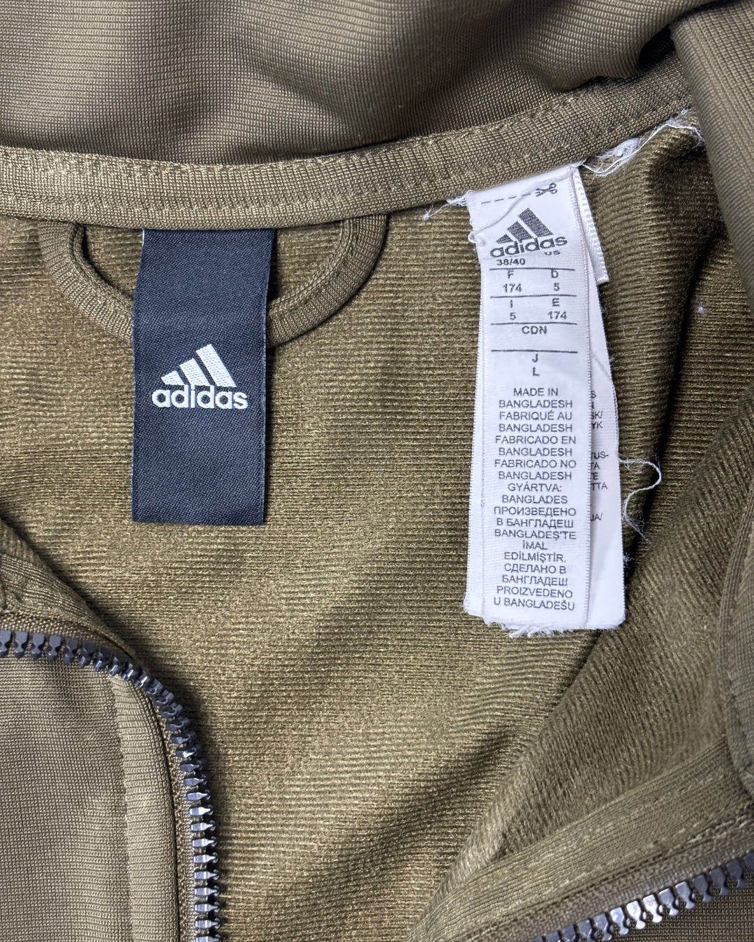 Product form Adidas Olive Green & Navy Blue 3-Stripes Full-Zip Track Jacket Measurements (inches) Pit to Pit 20.5Length: 27Brand Size: L Dhs50.00 Quantity Add to cart Washed & Ready to WearFree shipping on all orders above 100 AEDNext day delivery