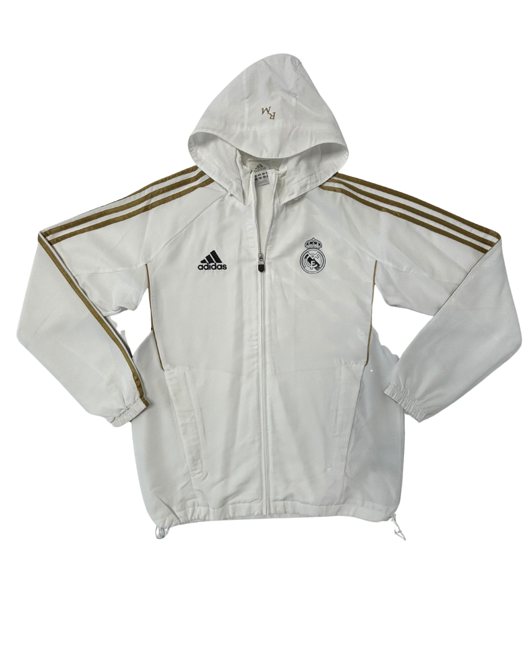 Product form Adidas Real Madrid White Full-Zip with Gold Stripes Hooded Jacket Measurements (inches) Pit to Pit 21.8Length: 28.7Brand Size: L Dhs120.00 Quantity Add to cart Washed & Ready to WearFree shipping on all orders above 100 AEDNext day delivery