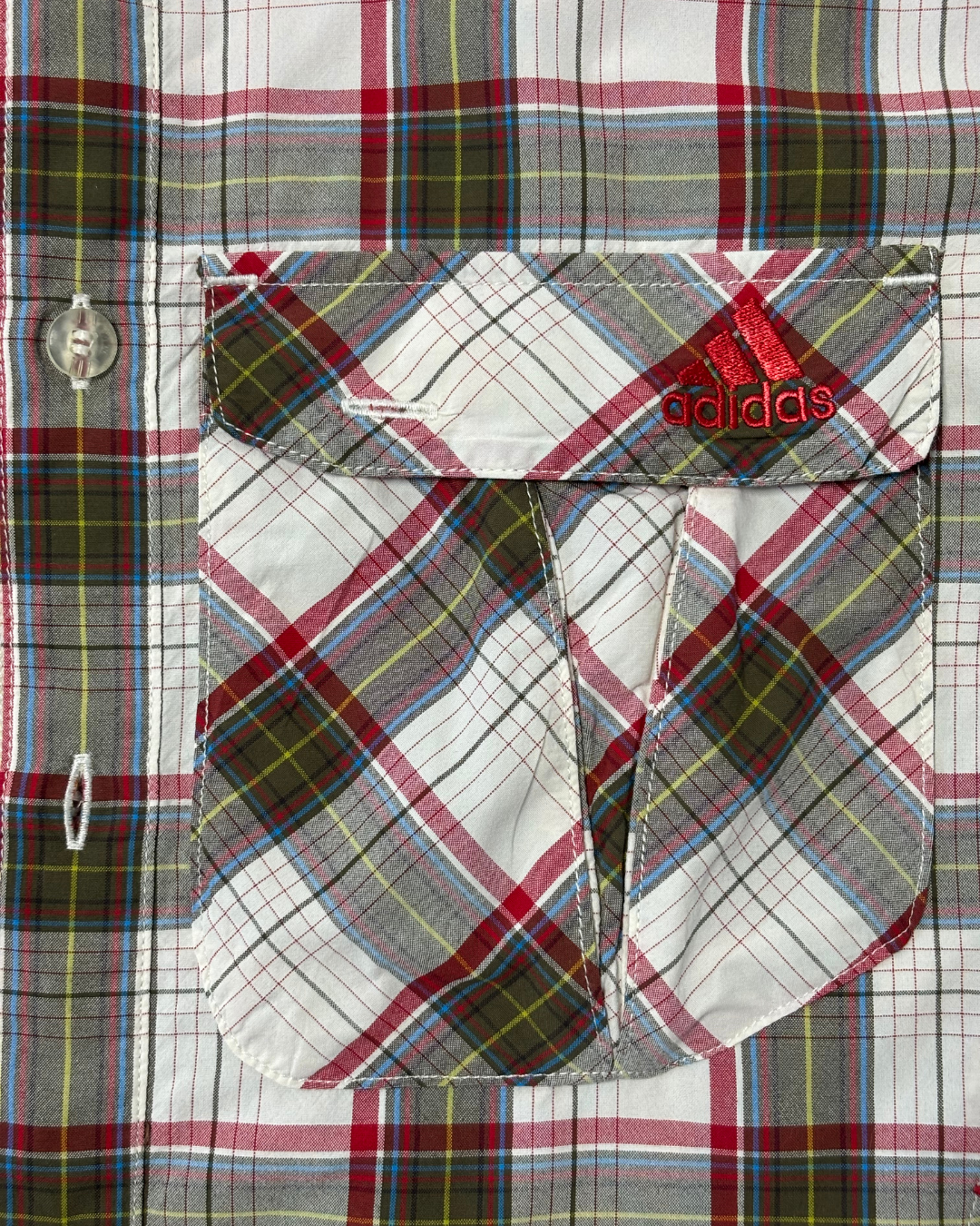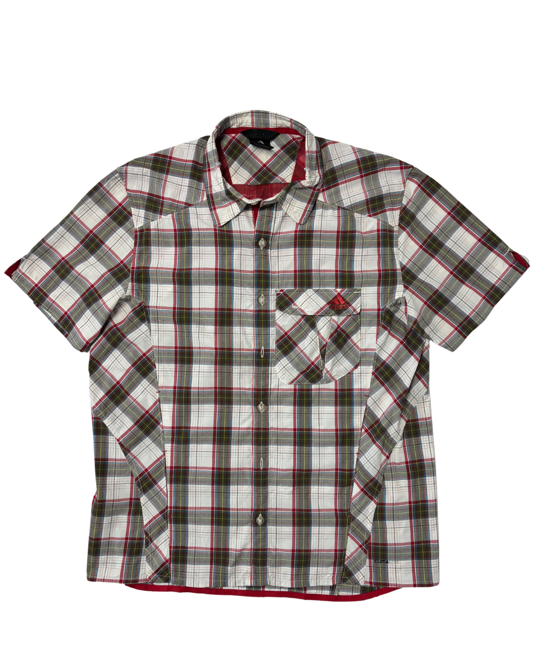 Adidas Red & Olive Plaid ClimaLite Short Sleeve Button-Up Shirt