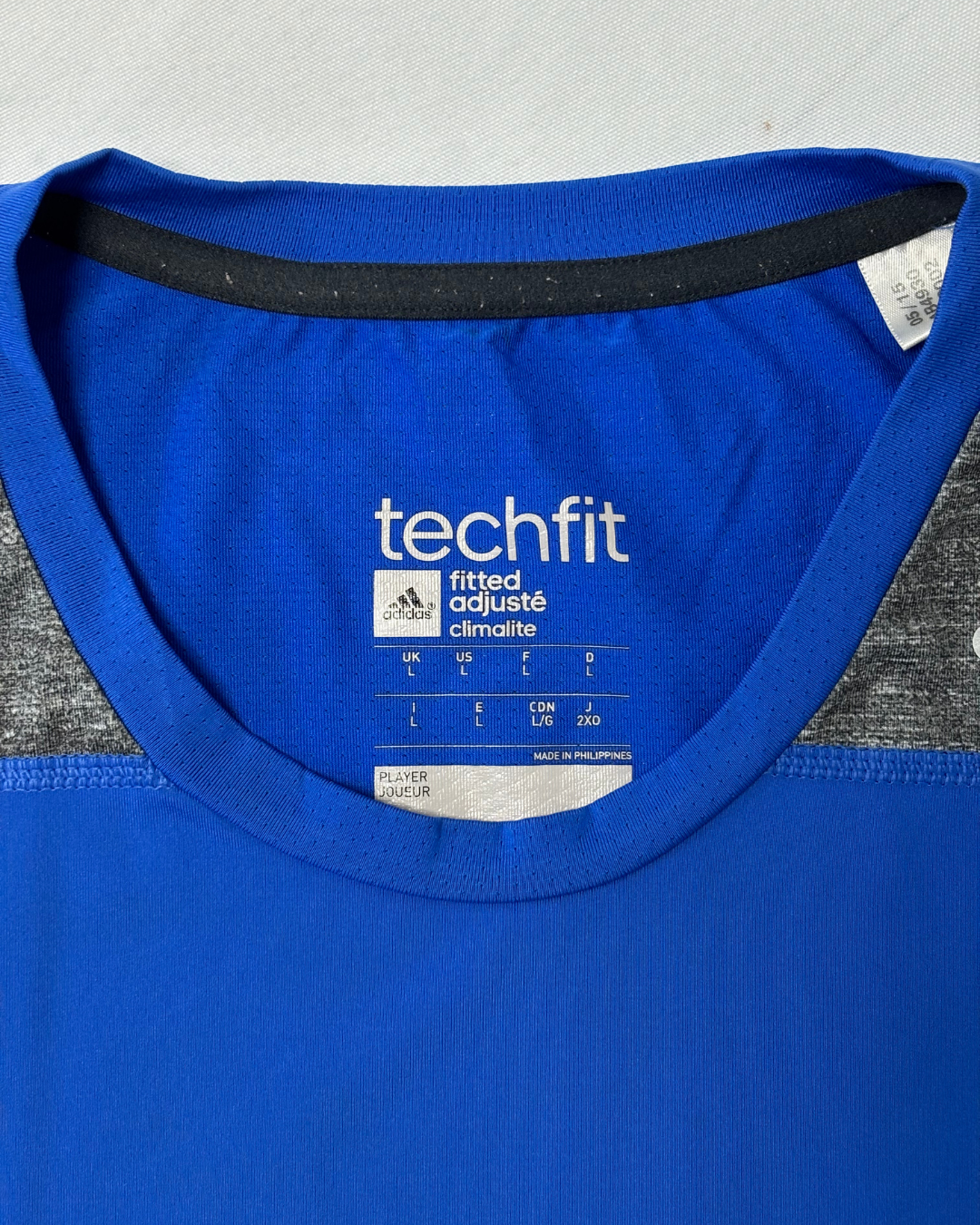 Product form Adidas Techfit Climalite Performance Training Blue & Grey Panel Shirt Measurements (inches) Pit to Pit 21.3Length 28.5 Brand Size: L Dhs40.00 Quantity Add to cart Washed & Ready to WearFree shipping on all orders above 100 AEDNext day delivery