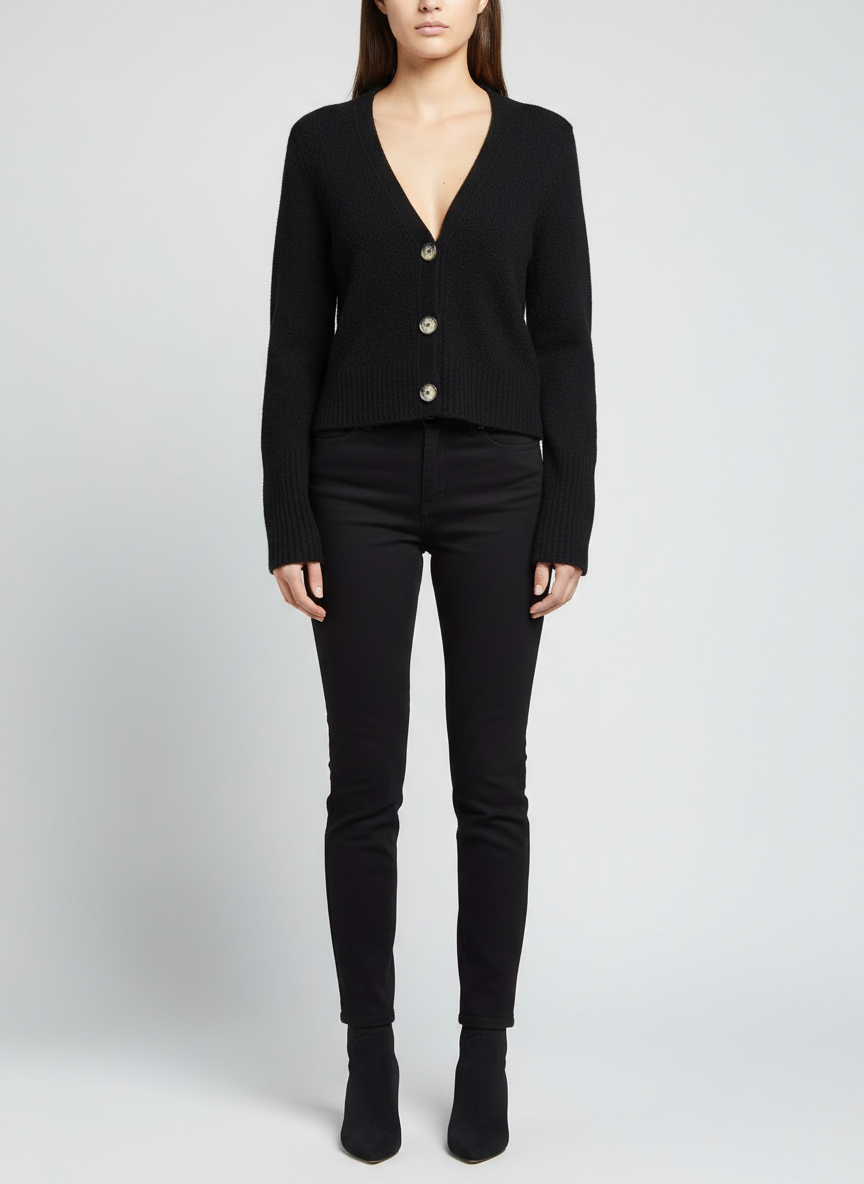 AllSaints Black Wool-Blend Cropped V-Neck Cardigan