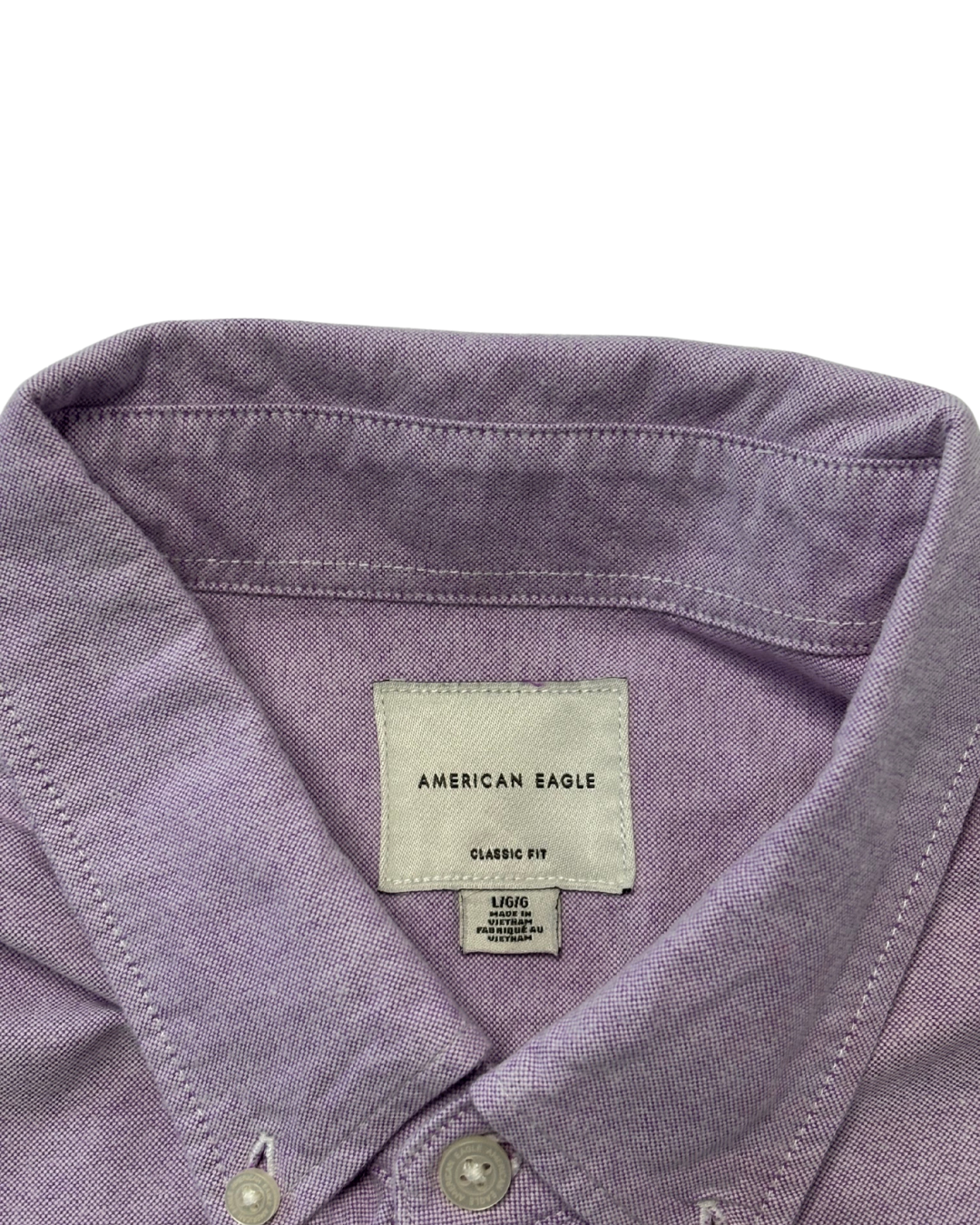 American Eagle Classic Fit Light Purple Short-Sleeve Oxford Shirt - L