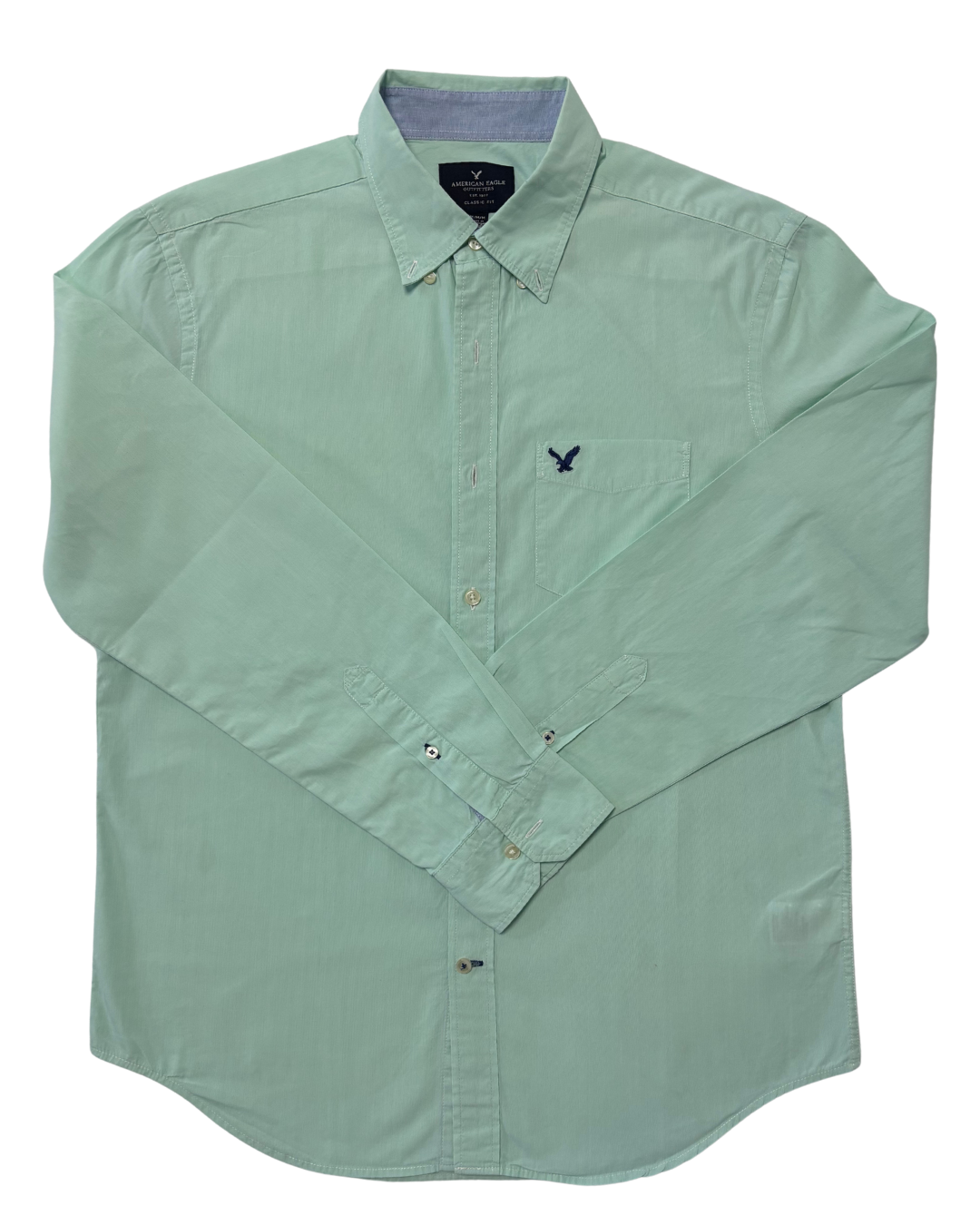 Product form American Eagle Classic Fit Mint Green Button-Up Shirt - M Measurements (inches) Pit to Pit: 21.5Length: 28.3 Brand Size: M Dhs45.00 Quantity Add to cart Washed & Ready to WearFree shipping on all orders above 100 AEDNext day delivery