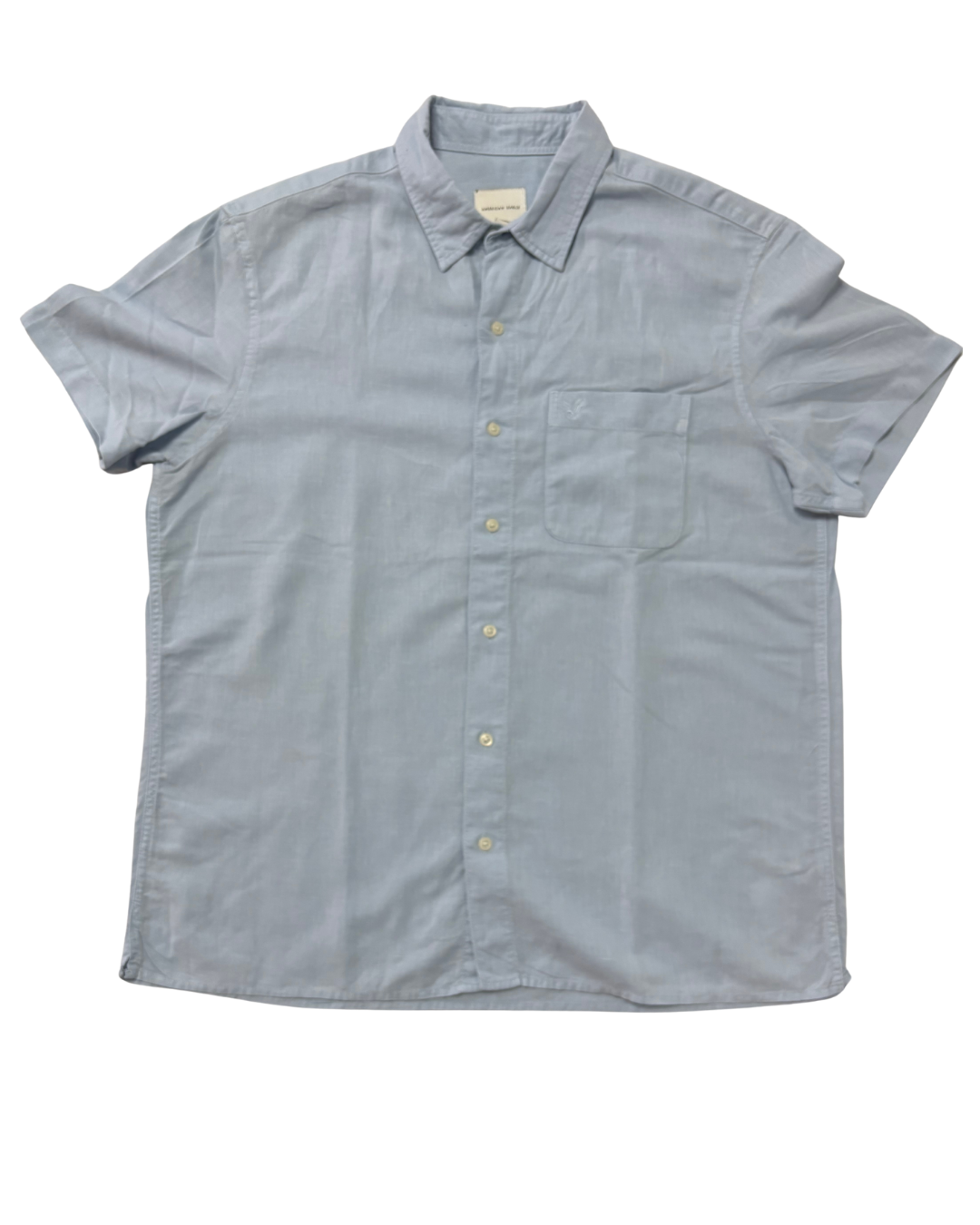 American Eagle Light Blue Short Sleeve Button-Up Linen Shirt - XL