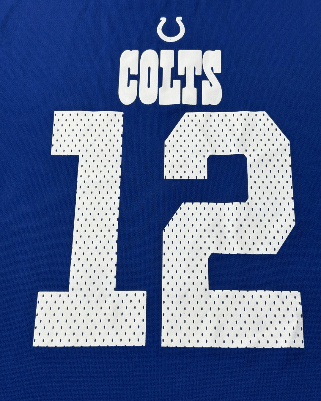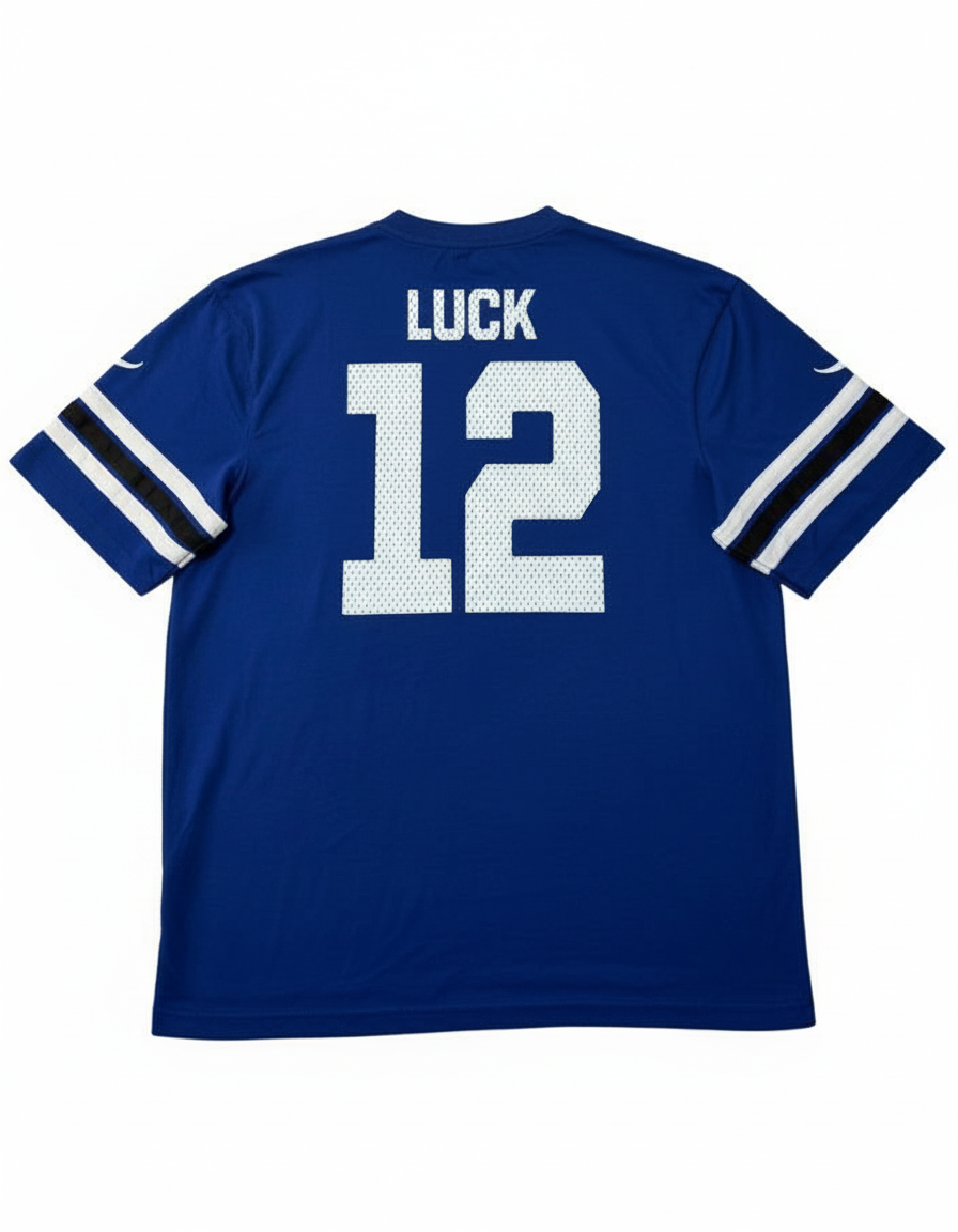 Rep a legend with this authentic Andrew Luck Indianapolis Colts NFL jersey. Featuring the iconic royal blue colorway, this jersey displays Luck's number 12 and the classic Colts horseshoe logo on the front and back. Crafted from breathable, high-quality performance fabric with athletic stripe detailing on the sleeves, it's the perfect piece for game days, sports collections, or a retro-inspired street style look. Durable and lightweight, this jersey offers a comfortable fit for any NFL enthusiast.