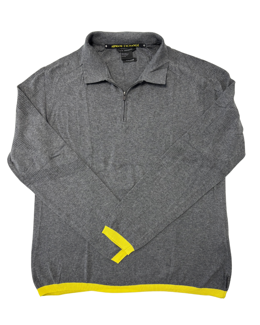 Product form Armani Exchange Grey Cotton Cashmere Quarter-Zip Sweater - M Measurements:Pit To Pit: 22.4Length: 26 Brand Size: XL Dhs65.00 Quantity Add to cart Washed & Ready to WearFree shipping on all orders above 100 AEDNext day delivery