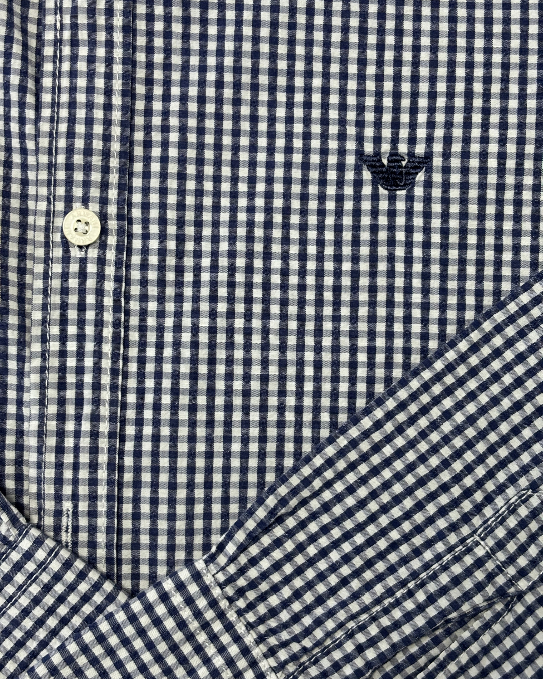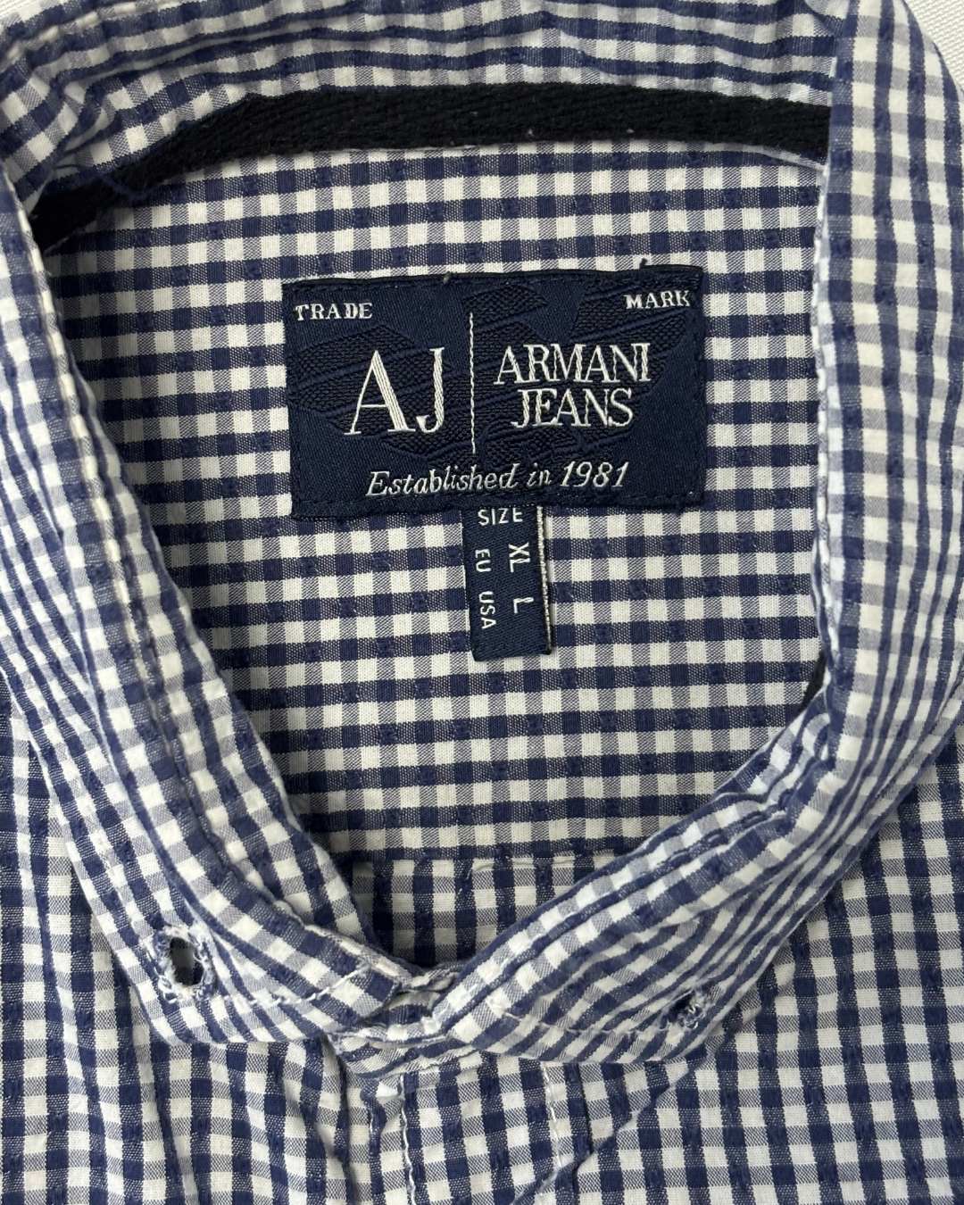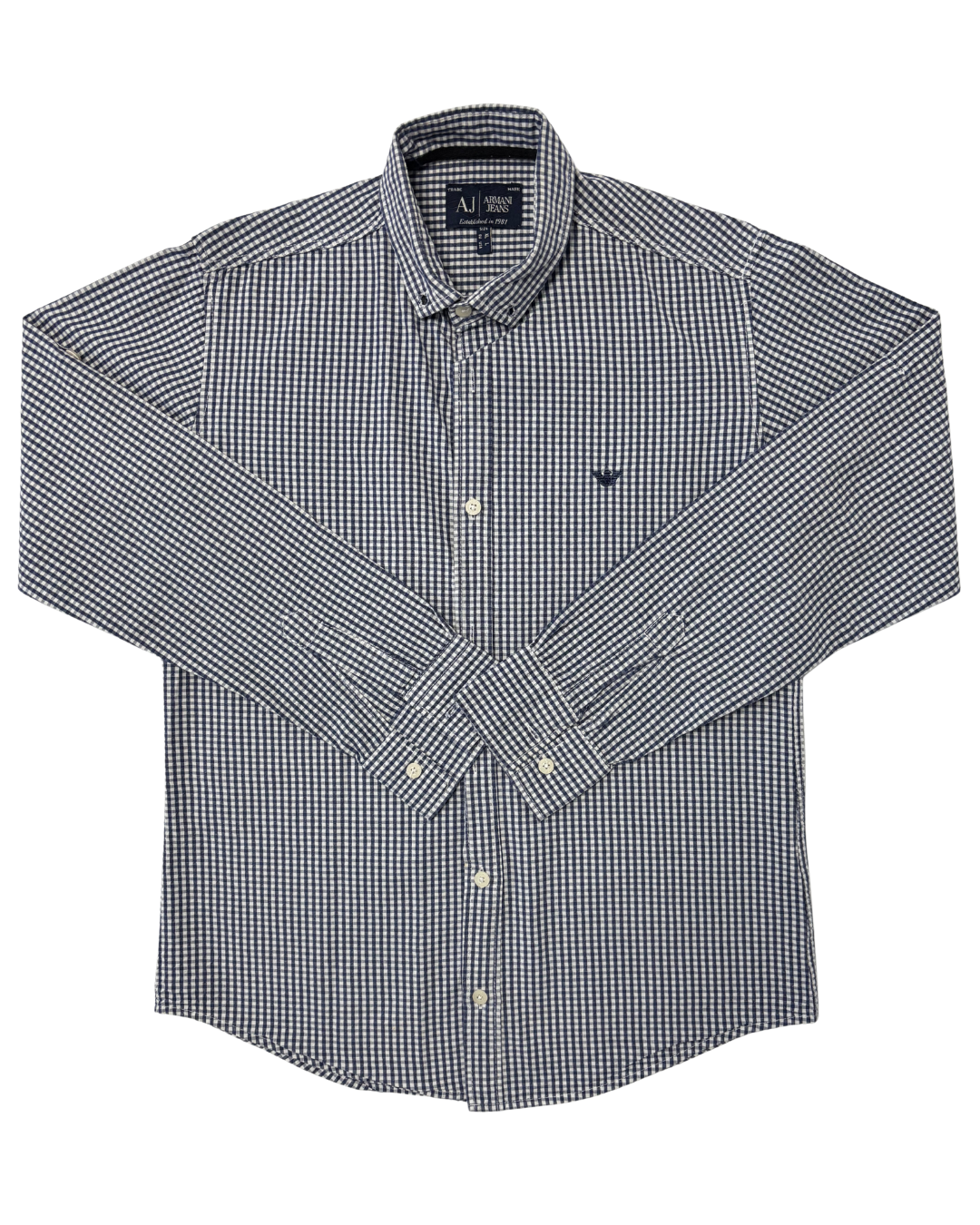 Product form Armani Jeans Navy & White Gingham Check Long-Sleeve Shirt Measurements (inches) Pit to Pit: 20.2Length: 26.7 Brand Size: XL Dhs55.00 Quantity Add to cart Washed & Ready to WearFree shipping on all orders above 100 AEDNext day delivery