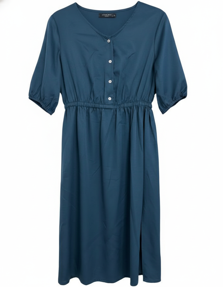 Austin Reed London Teal Button-Front Elasticated Waist Midi Dress