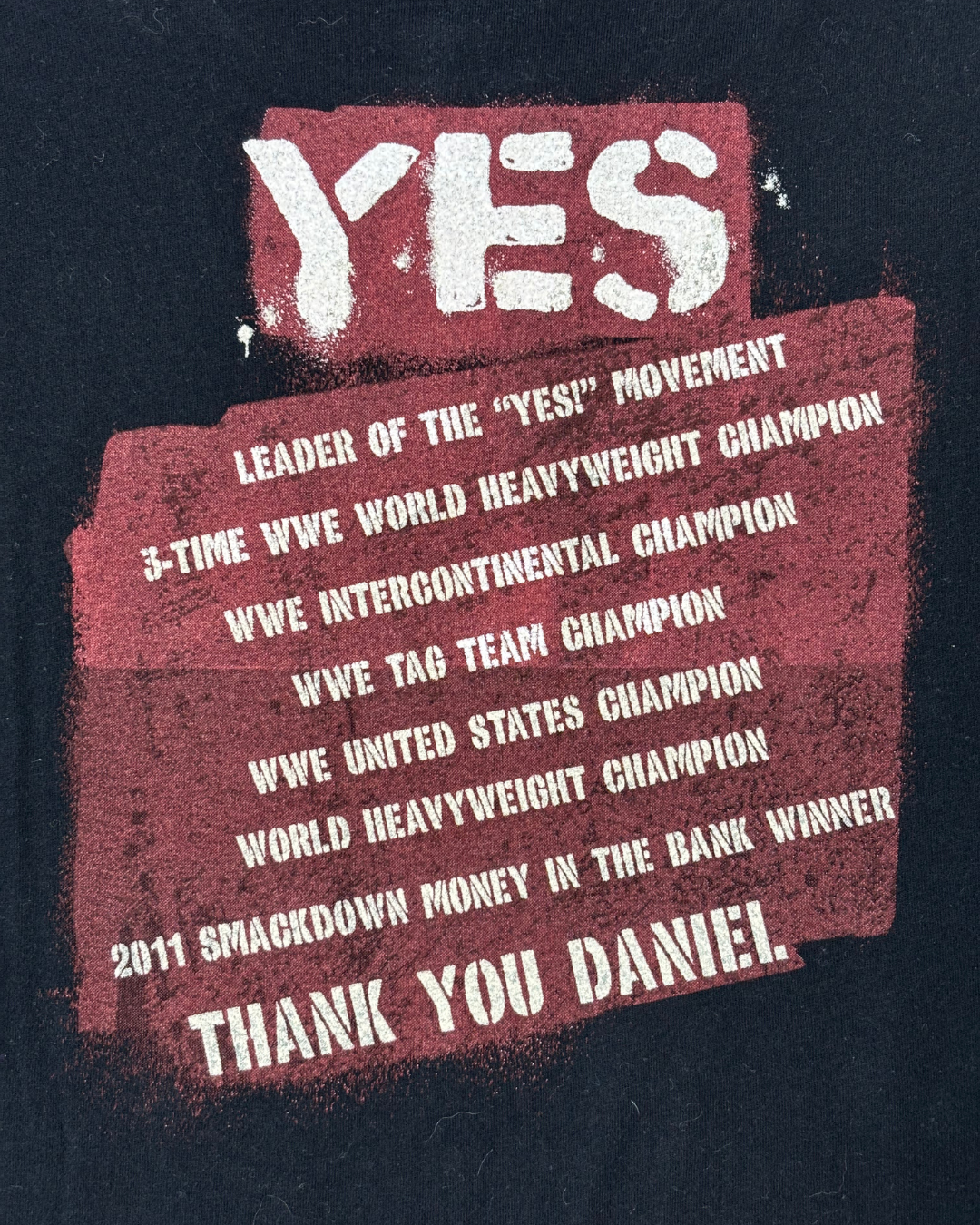 Product form Authentic WWE Daniel Bryan “YES Movement” Thank You T-Shirt - S Measurements (inches) Pit to Pit: 19Length: 25.5 Brand Size: XL Dhs45.00 Quantity Add to cart Washed & Ready to WearFree shipping on all orders above 100 AEDNext day delivery