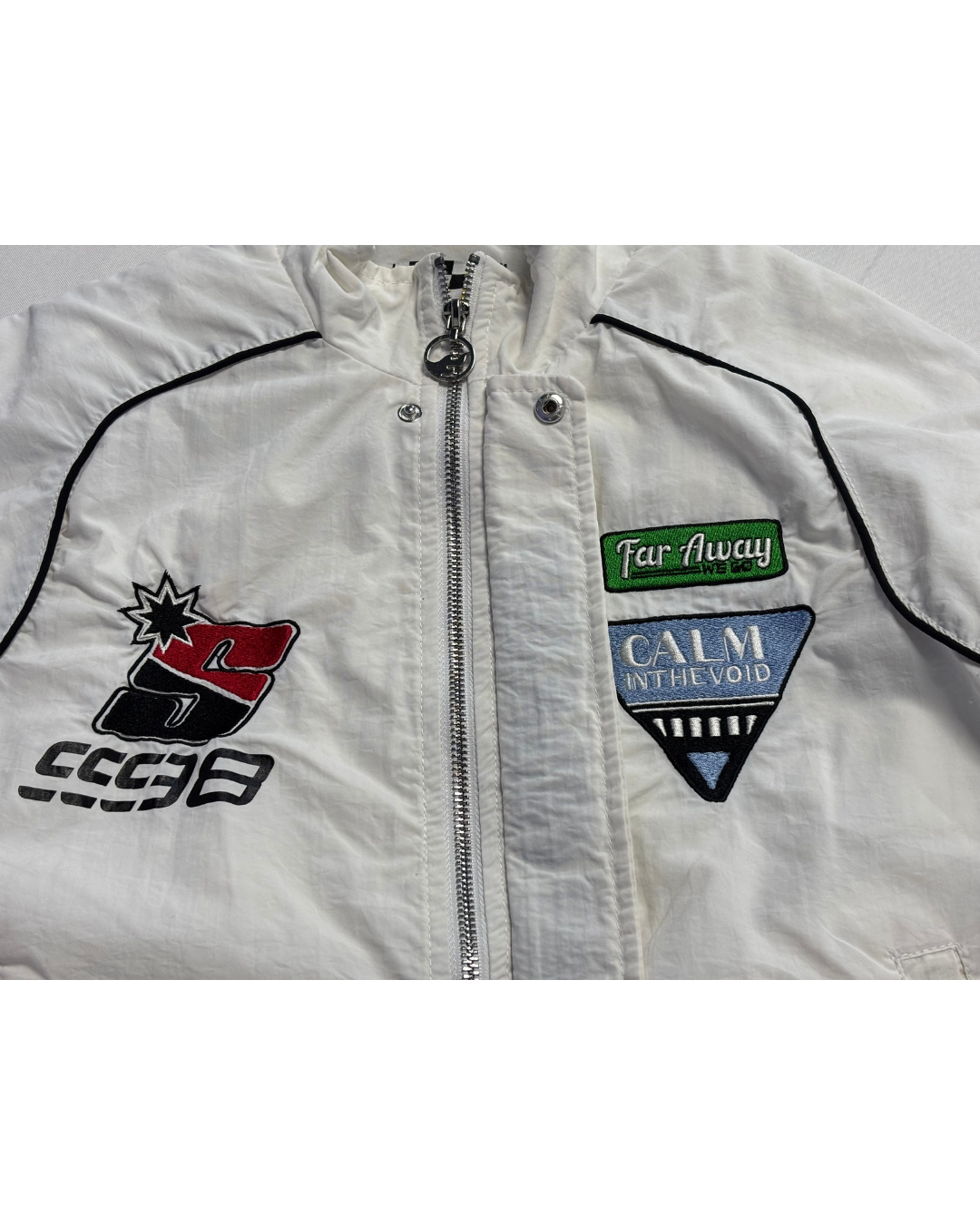 Bershka White Racing Inspired Graphic Windbreaker Jacket