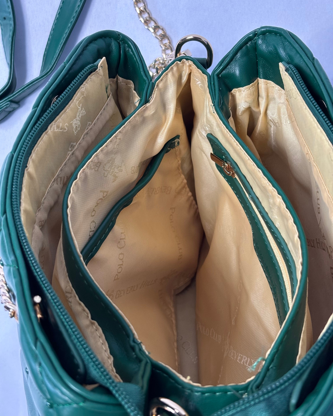 Beverly Hills Polo Club Green Quilted Handbag with Gold-Tone Chain