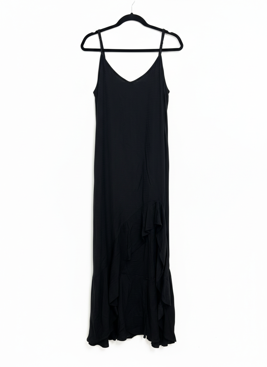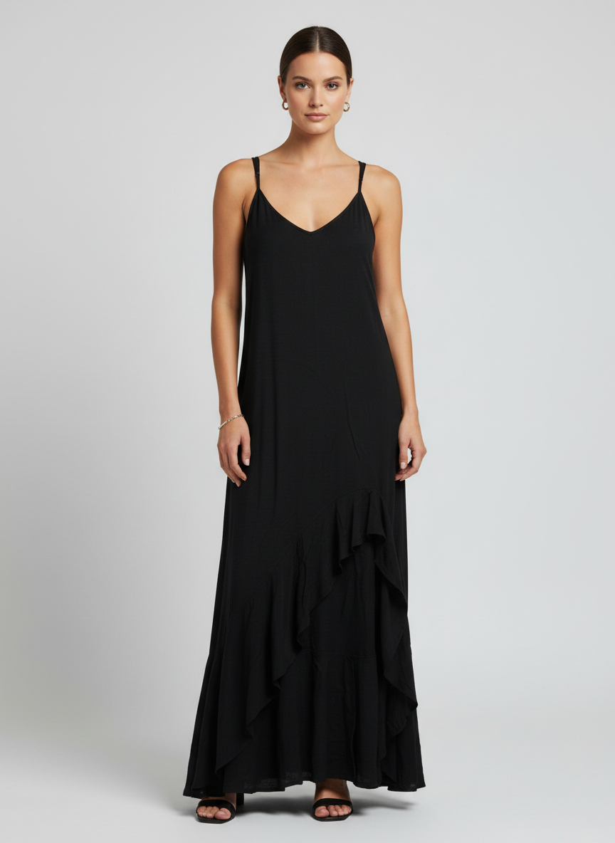Billabong Black Textured Ruffle Hem Maxi Dress