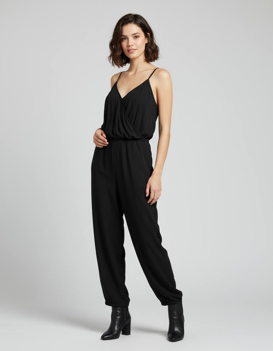 Achieve effortless evening elegance with this comfortable Black Spaghetti Strap Jumpsuit. Crafted from a luxurious soft jersey knit, this one-piece... Read more
