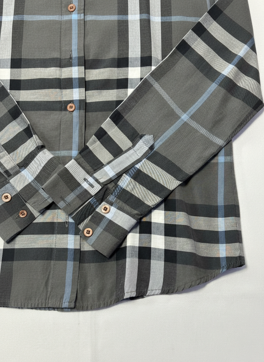 Burberry Grey Nova Check Long Sleeve Button-Down Shirt