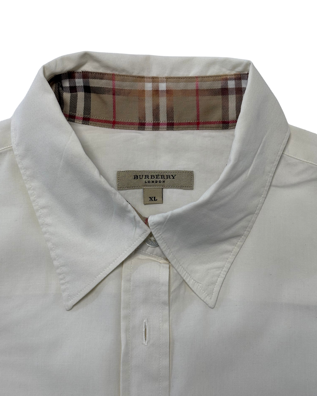 Burberry London White Long-Sleeve With Nova Check Collar Detail Shirt - M