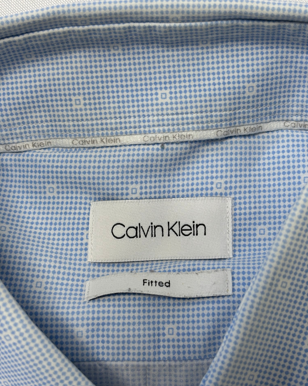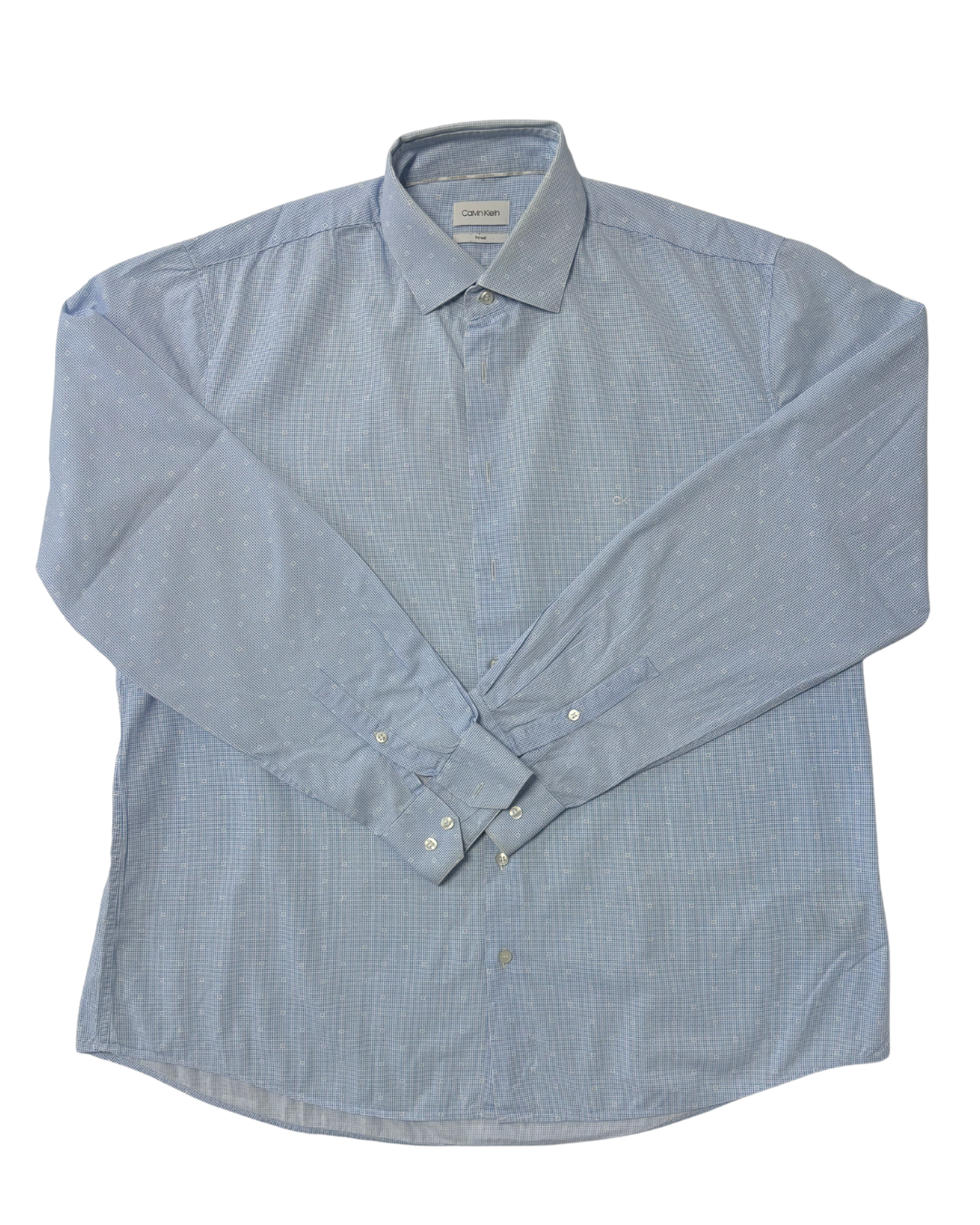 Calvin Klein Fitted Light Blue Micro-Checkered Long Sleeve Shirt - XL
