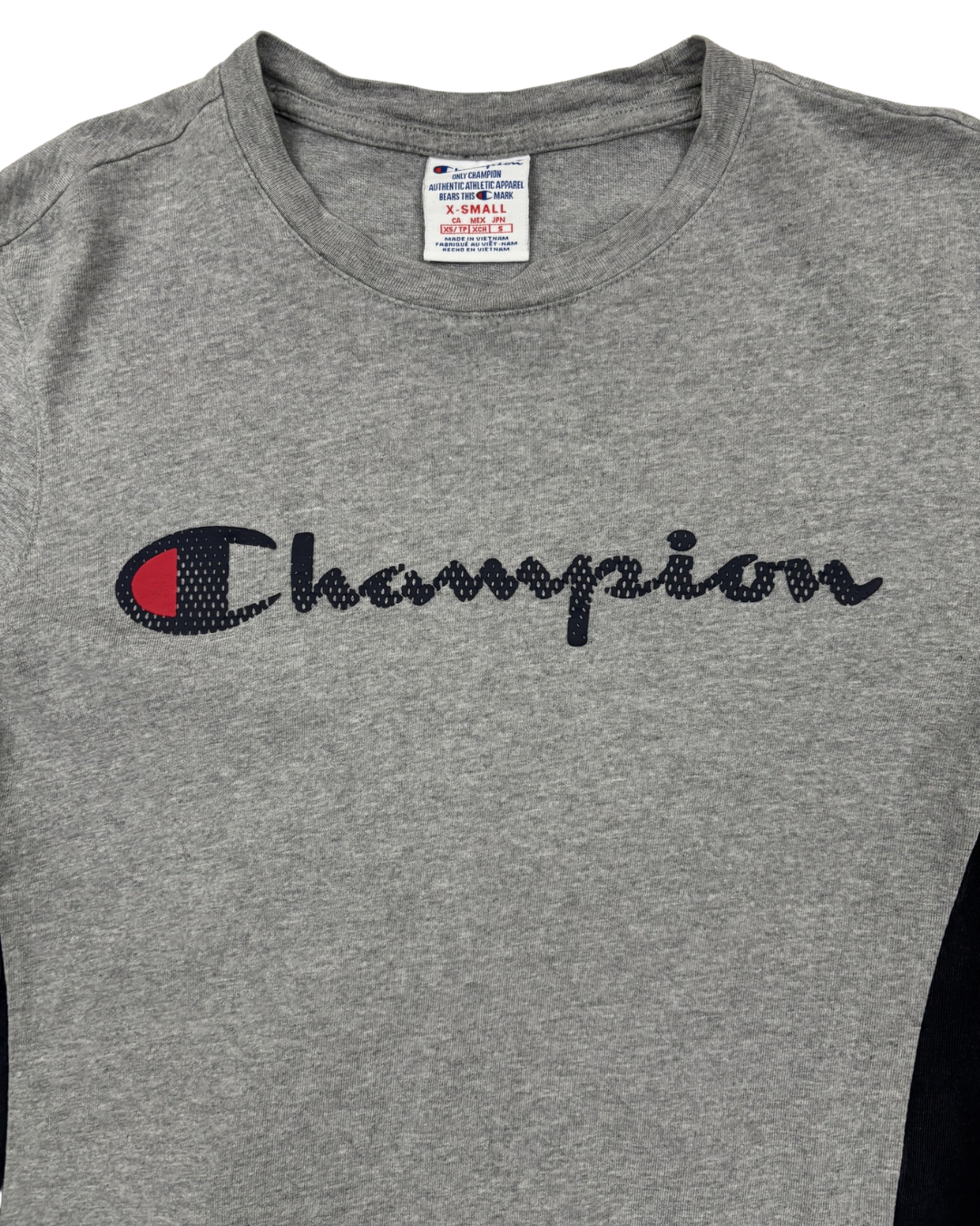 Product form Champion Colorblock Script Logo Gray T-Shirt - XS Measurements:Pit To Pit: 17Length: 25.5 Brand Size: XS Dhs30.00 Quantity Add to cart Washed & Ready to WearFree shipping on all orders above 100 AEDNext day delivery
