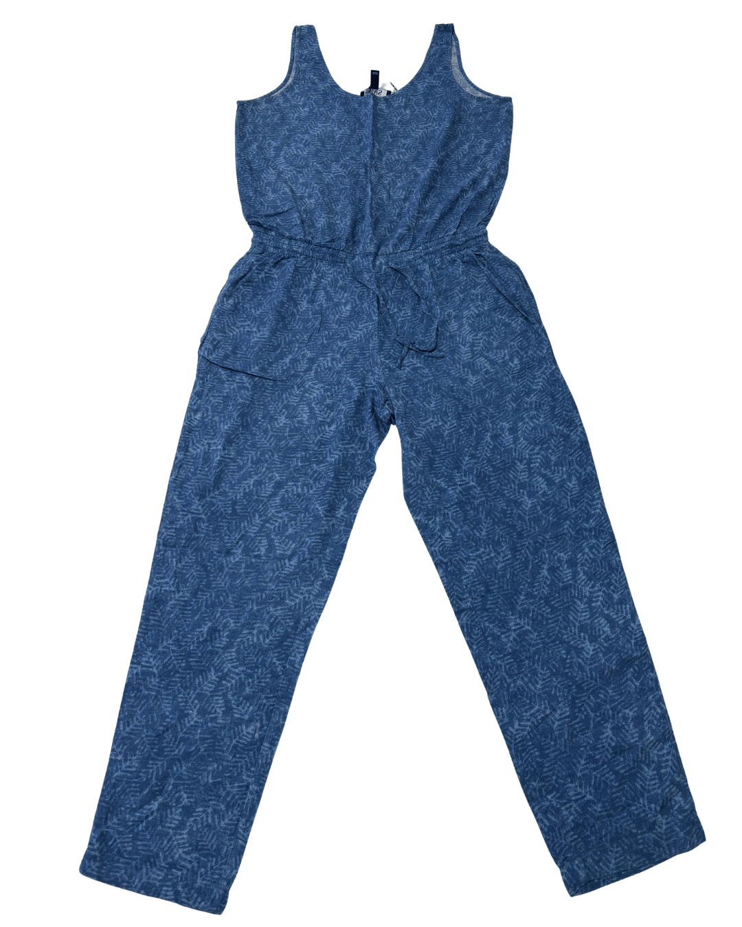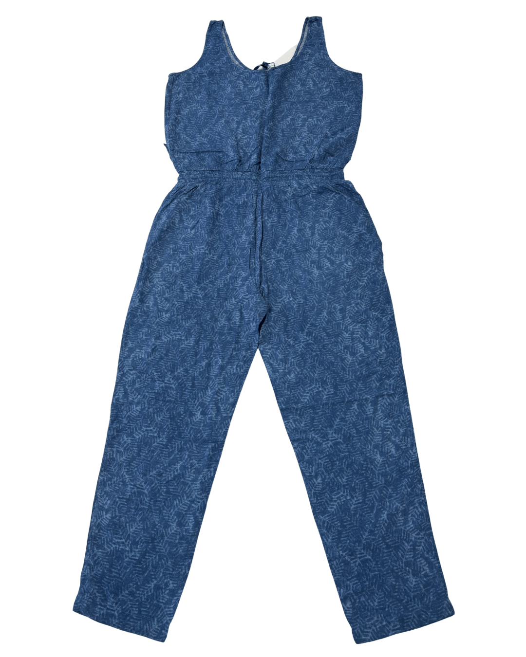 Chaps Denim Blue Leaf-Print Sleeveless Jumpsuit