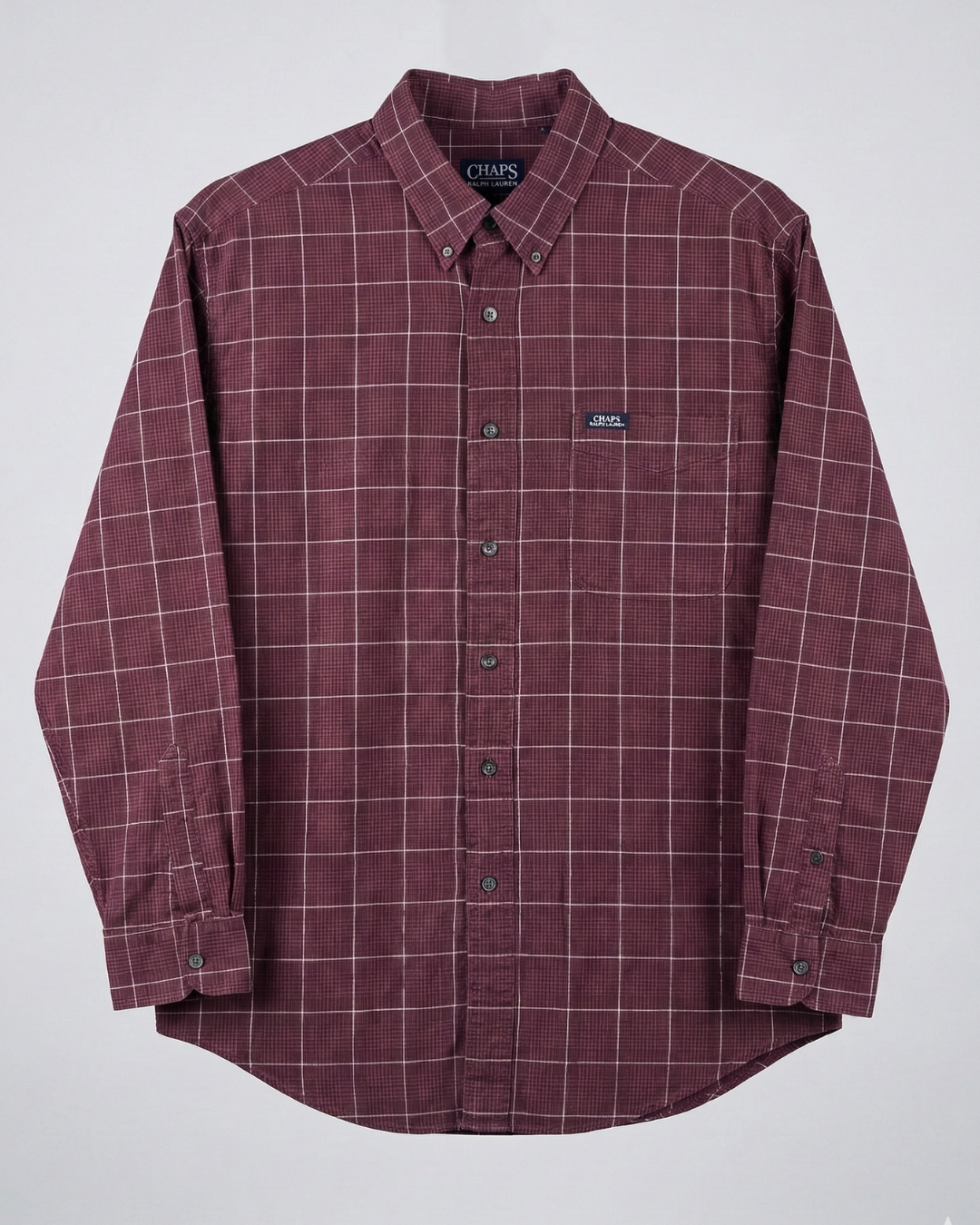 Chaps Ralph Lauren Burgundy Grid Check Cotton Button-Down Shirt