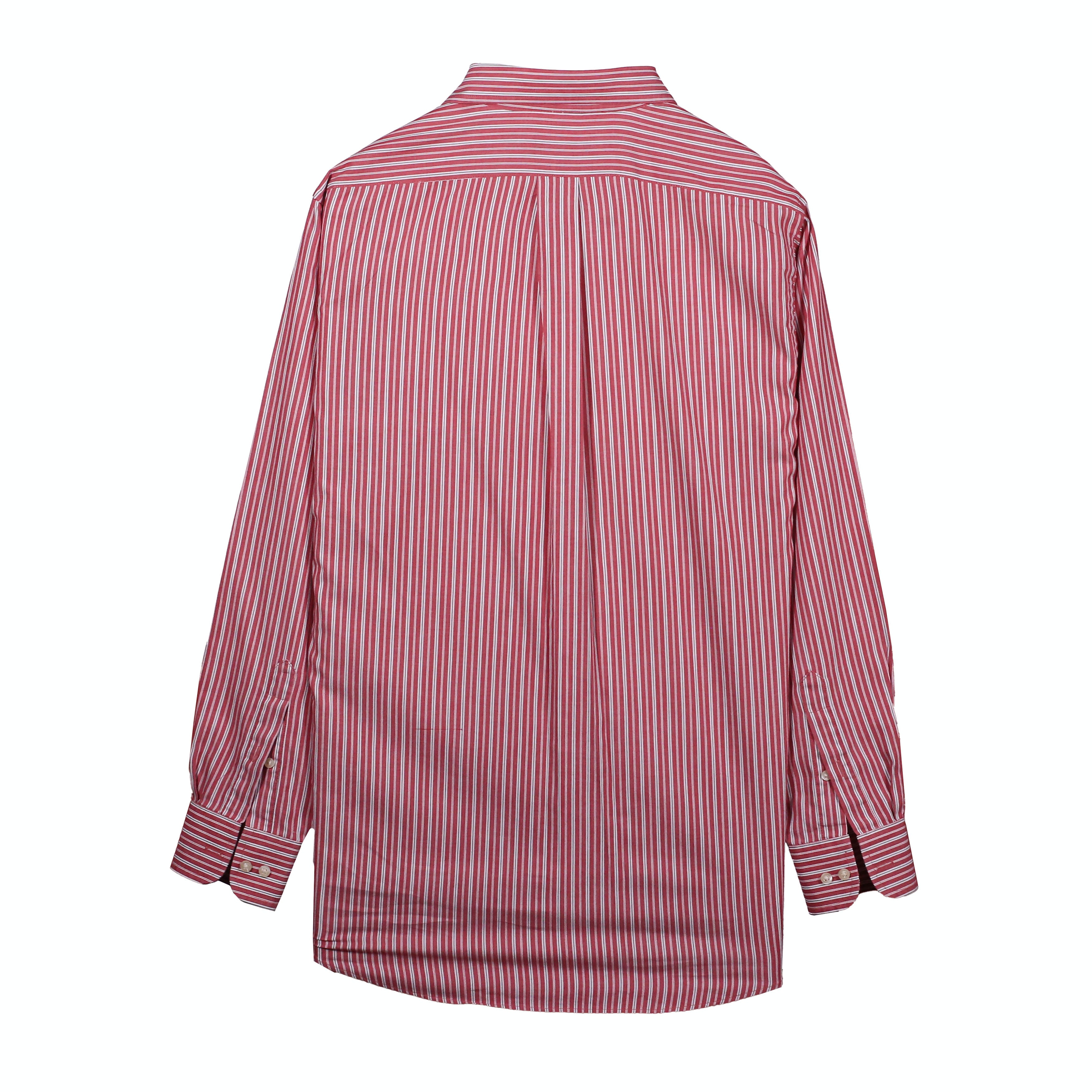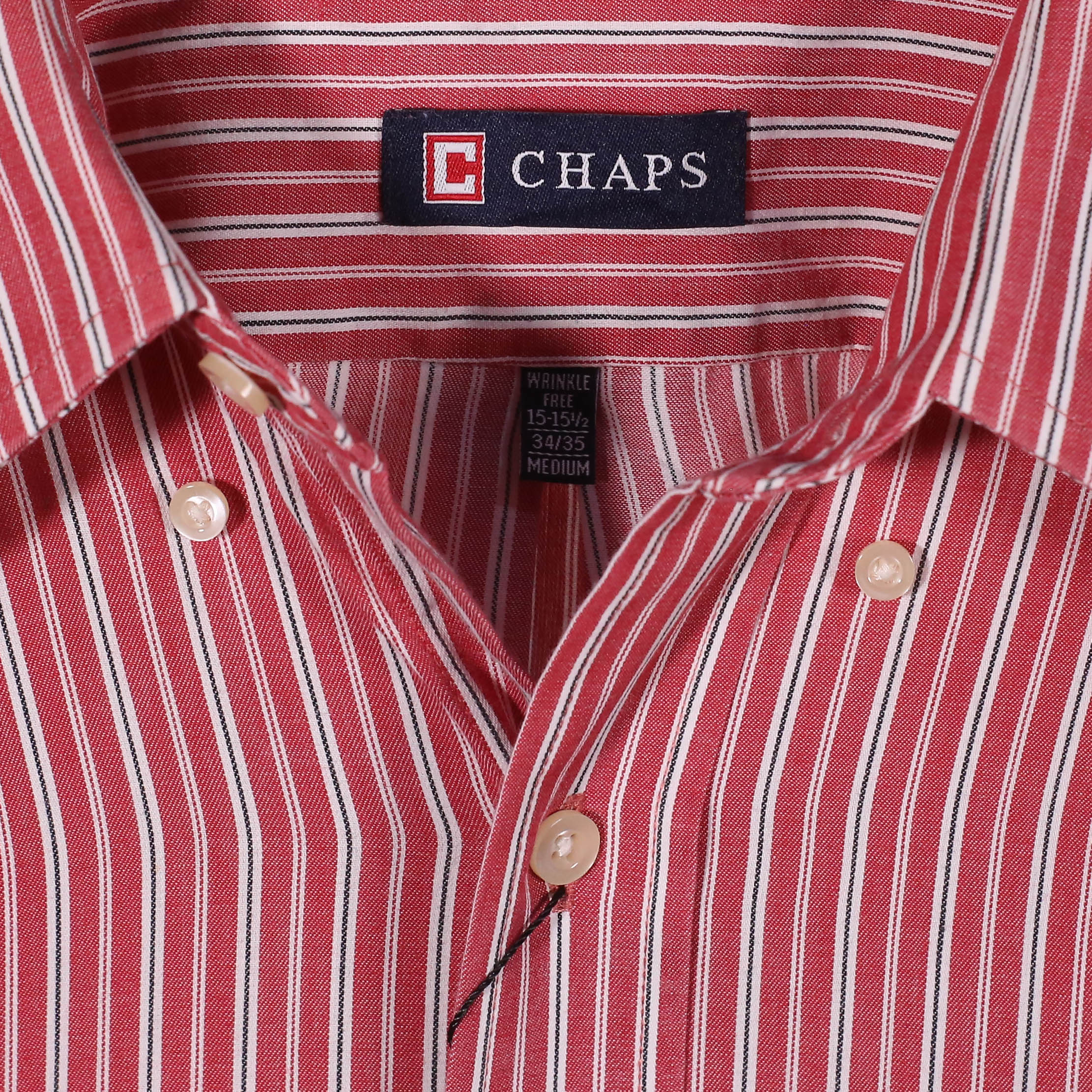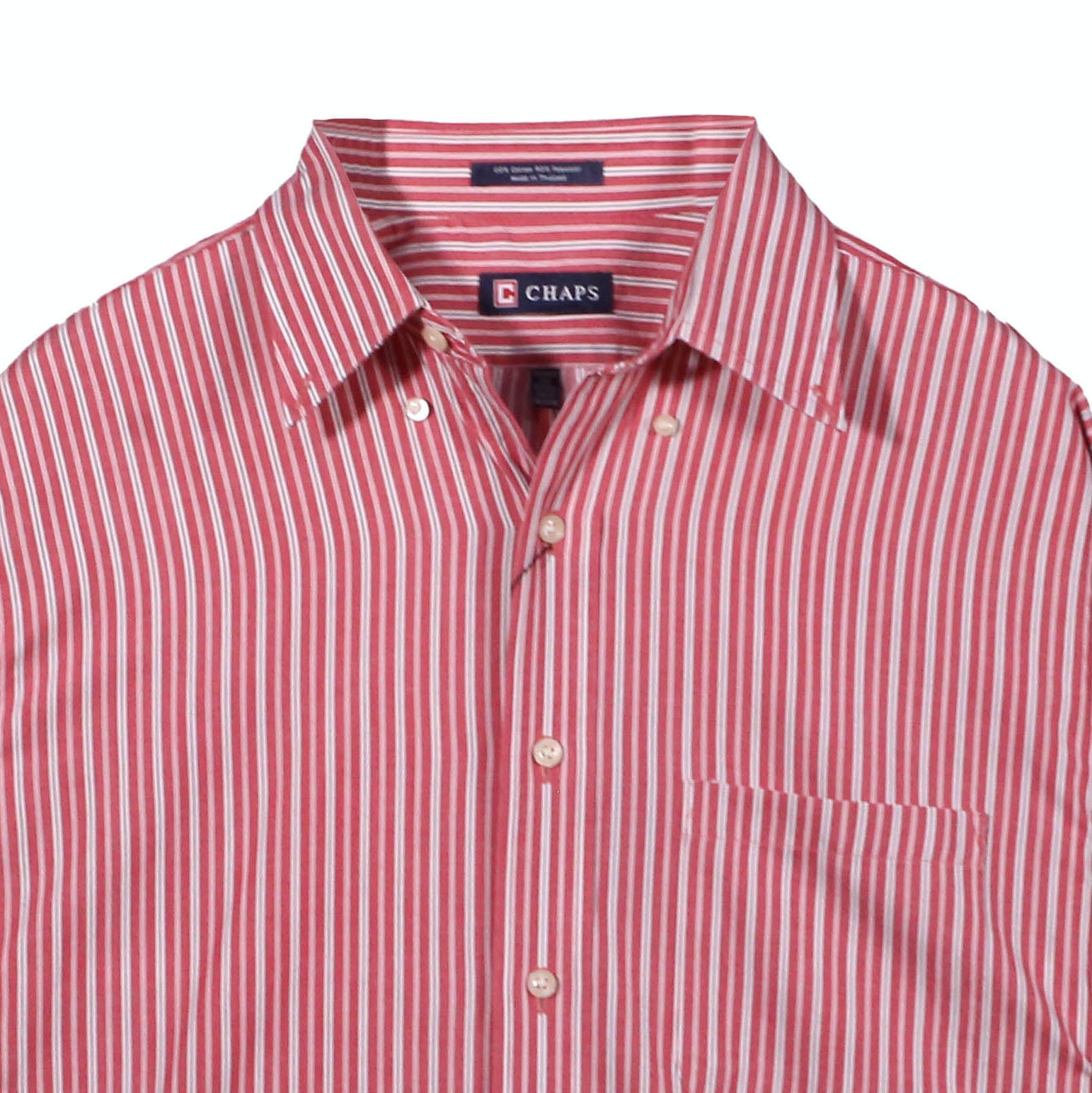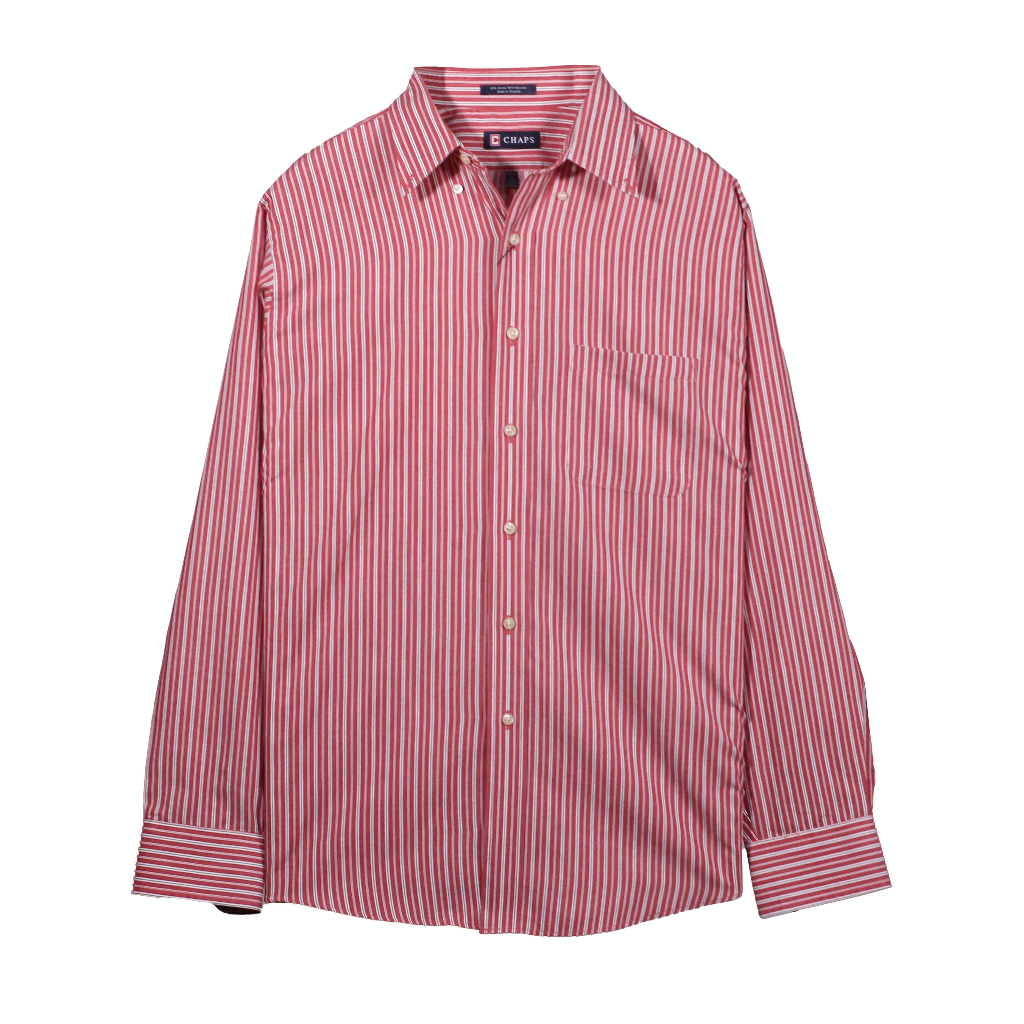 Chaps Red & White Vertical Striped Wrinkle-Free Cotton Dress Shirt