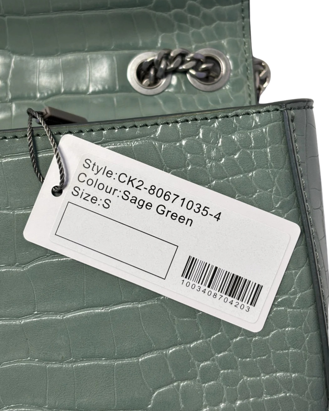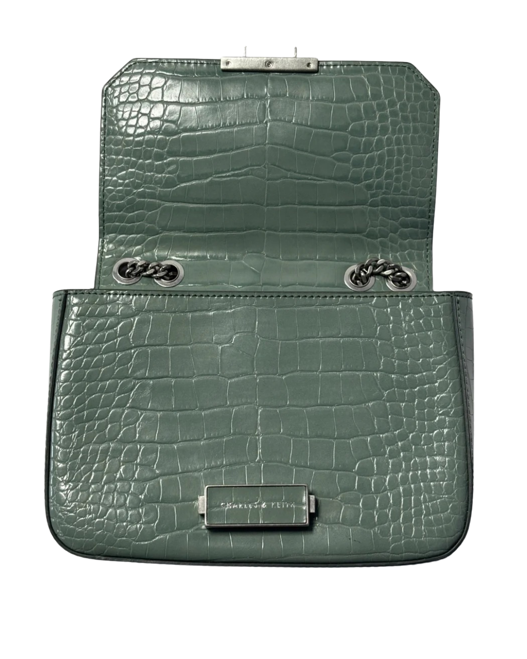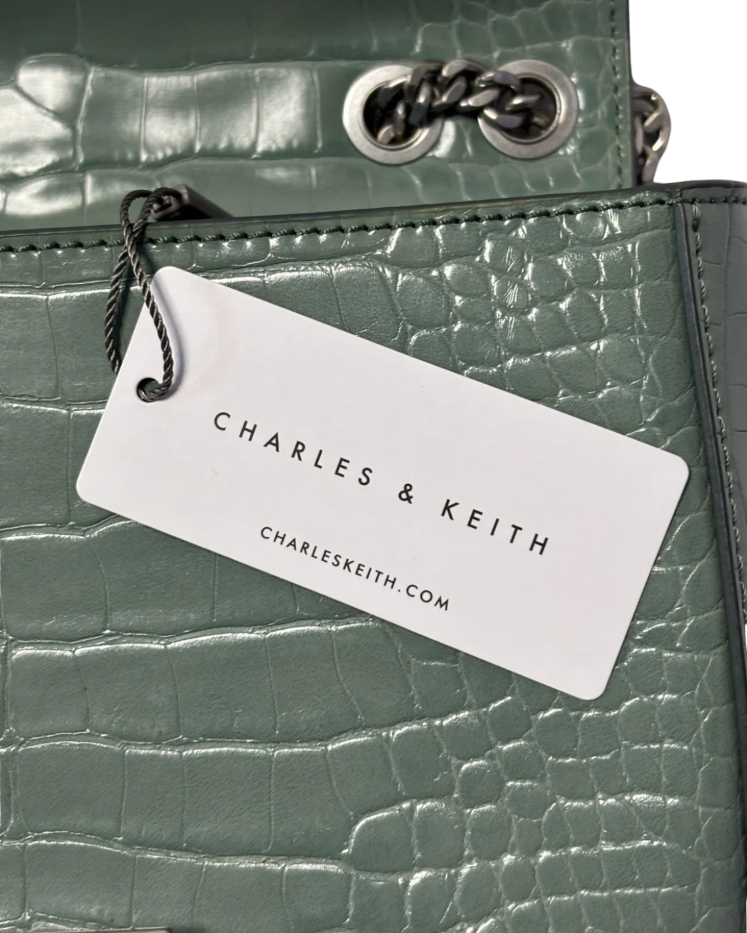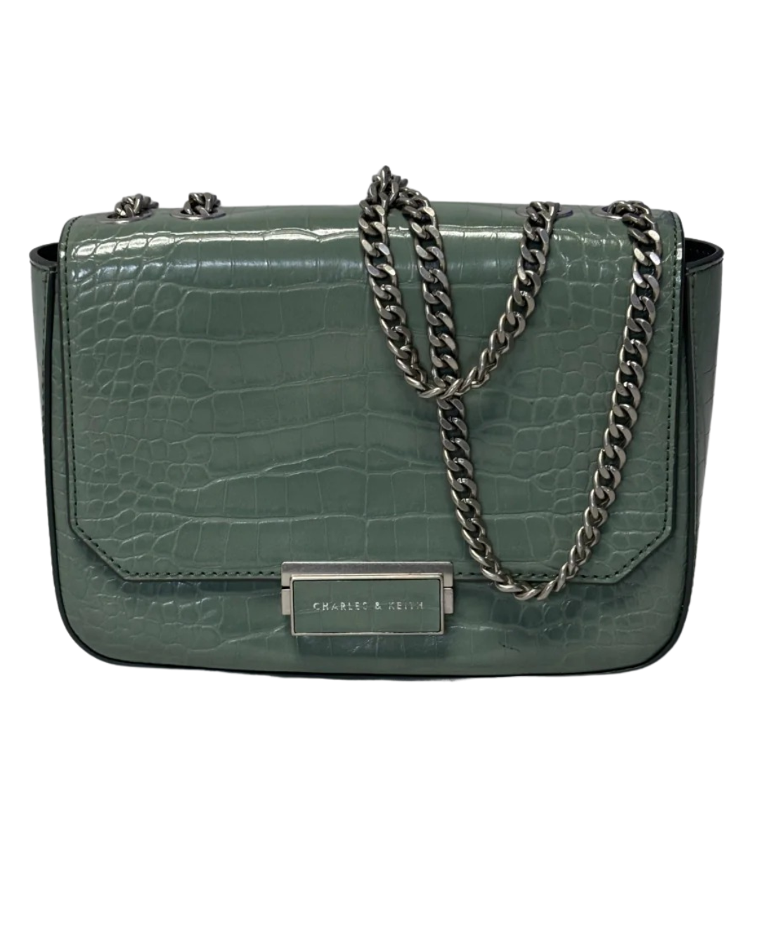Charles & Keith Sage Green Croc-Effect Chain Strap Bag W/TAG