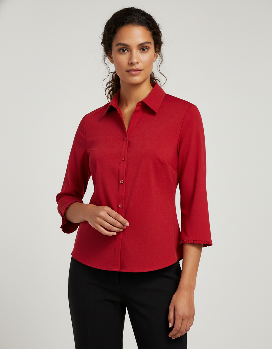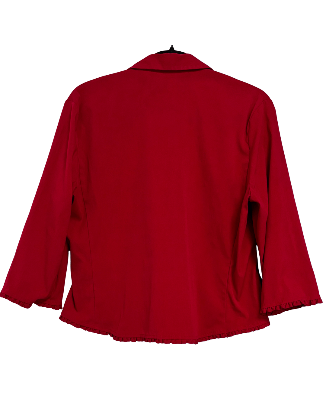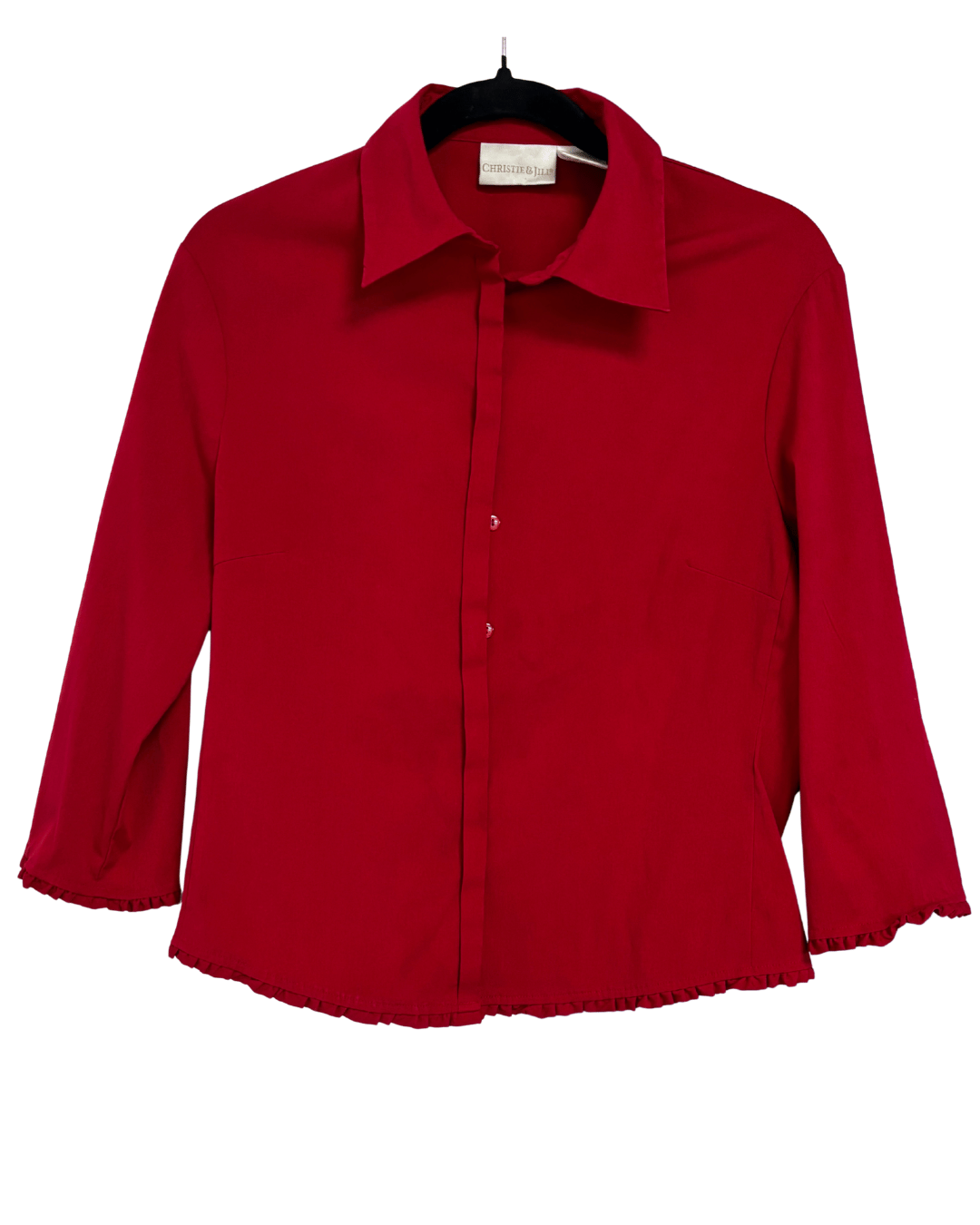 Christie & Jill Ruffle Trim Button-Up Red Blouse