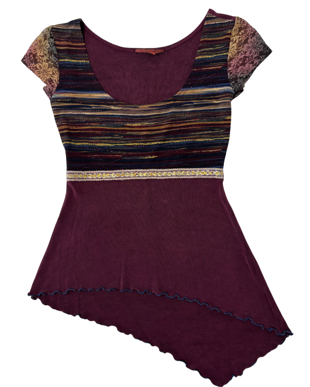 Product form Desigual Boho Asymmetrical Purple & Multicolor Lace Sleeve Top Measurements (inches) Pit to Pit: 14.5Length: 27Brand Size: NA Dhs45.00 Quantity Add to cart Washed & Ready to WearFree shipping on all orders above 100 AEDNext day delivery