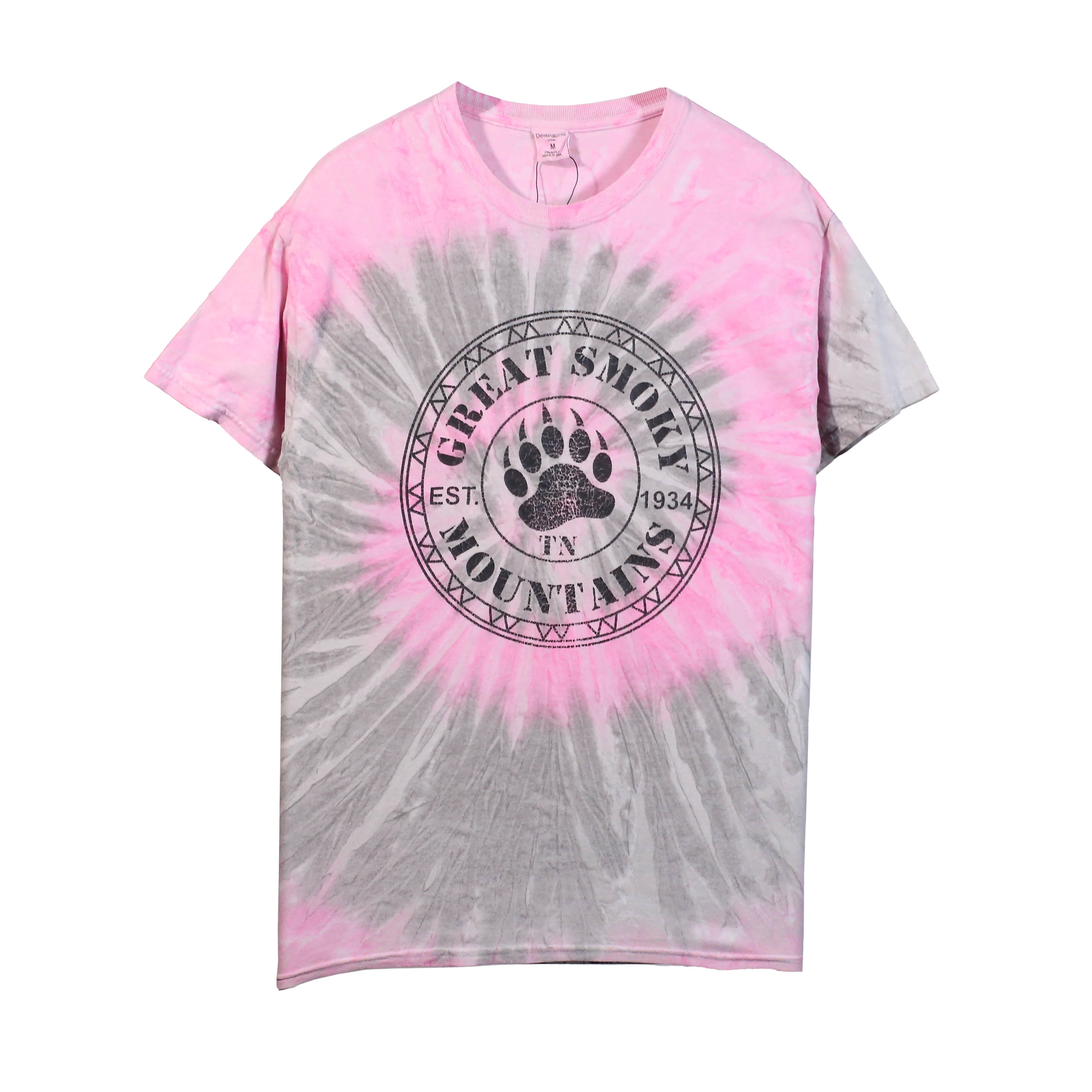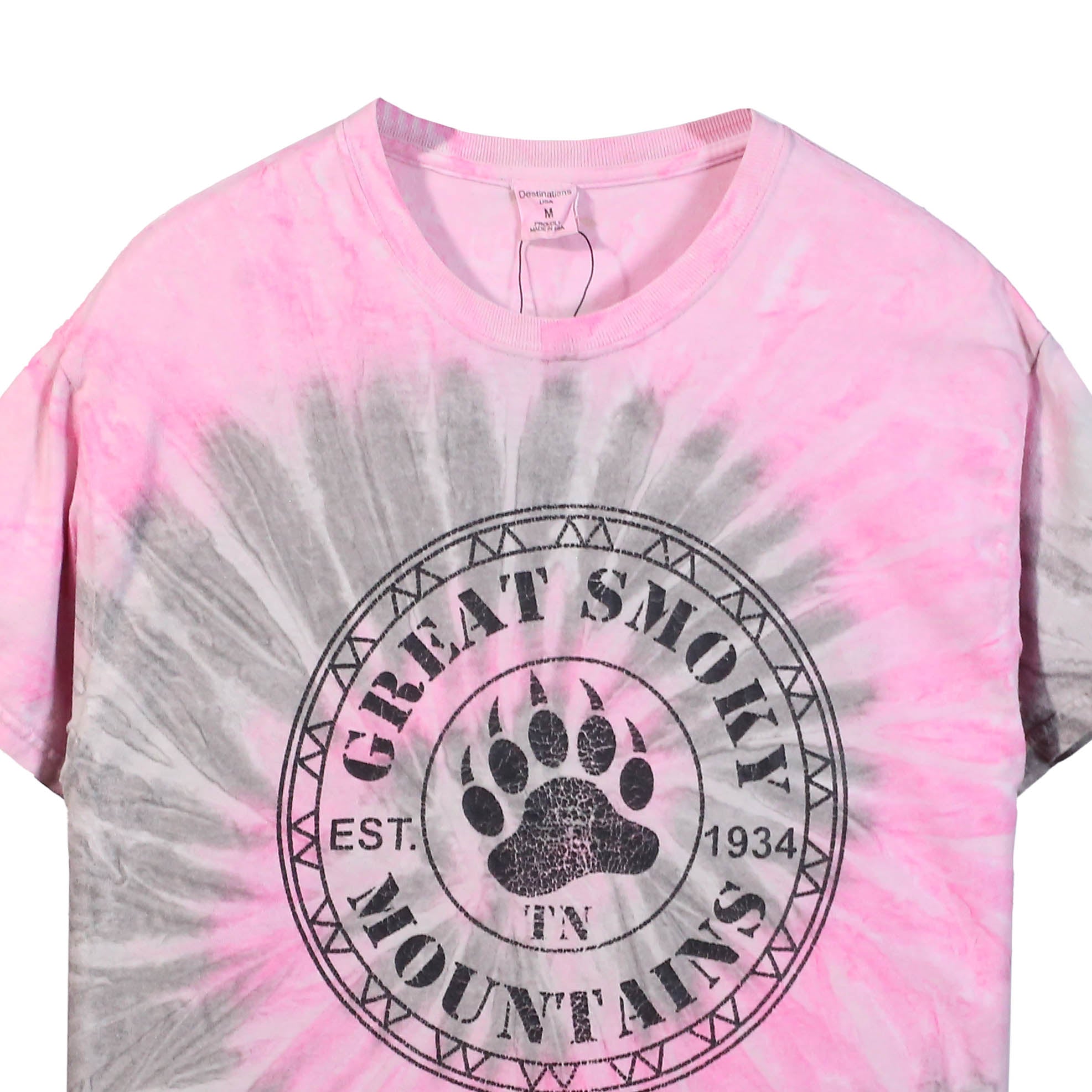 Destinations USA Great Smoky Mountains Pink & Grey Tie-Dye T-Shirt Made in USA