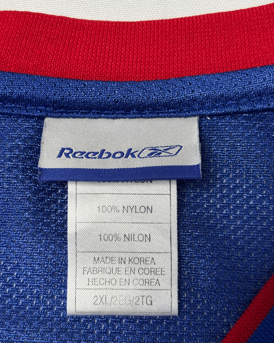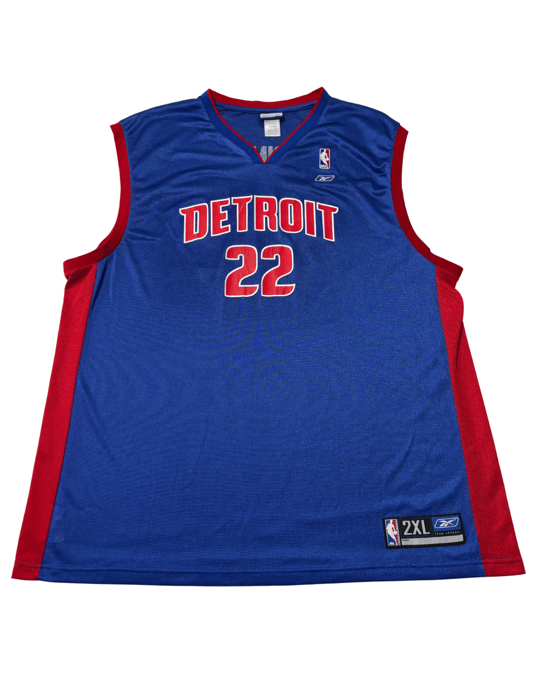 Step onto the court of vintage style with this unique Detroit Pistons Tayshaun Prince #22 jersey by Reebok. Sporting the classic blue and red colorway, this sleeveless V-neck piece features stitched 'DETROIT' lettering and the number '22' on the front, with 'PRINCE' and '22' prominently displayed on the back. Crafted from 100% nylon, it offers a breathable, mesh feel. Perfect for fans of the early 2000s Pistons era, this basketball jersey features an extended length (+2 inches) typical of the sport, offering an authentic court-ready look.