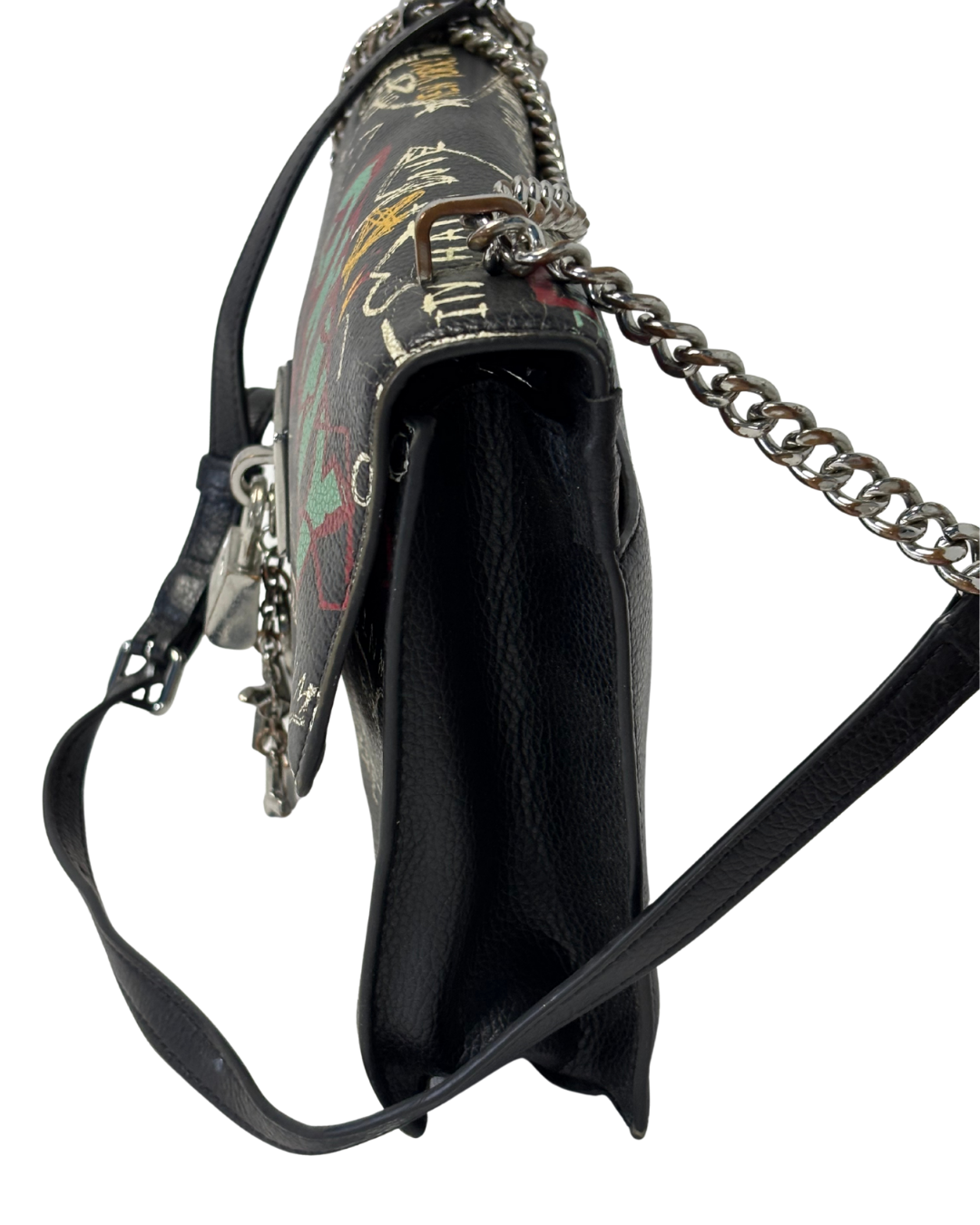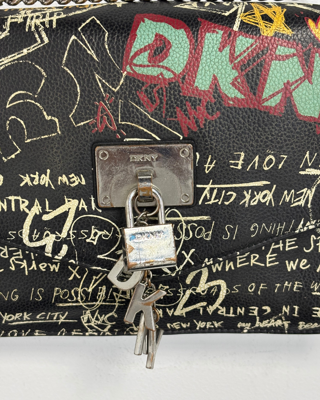 DKNY Limited Edition Black Graffiti Print with Padlock & Chain Crossbody Bag