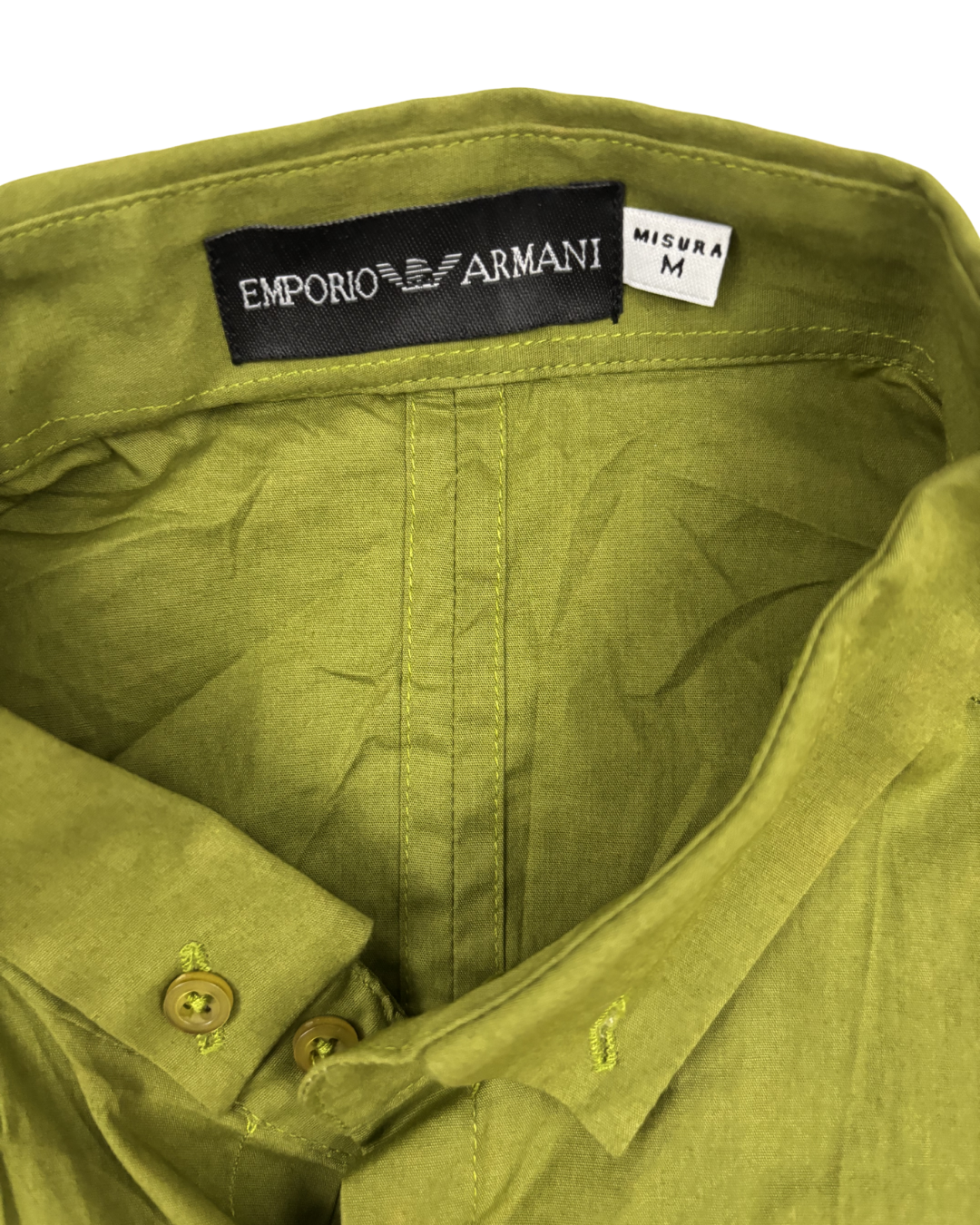 Product form Emporio Armani Olive Green Minimalist Button-Up Shirt - XS Measurements (inches)Pit to Pit: 18Length: 29Brand Size: M Dhs65.00 Quantity Add to cart Washed & Ready to WearFree shipping on all orders above 100 AEDNext day delivery