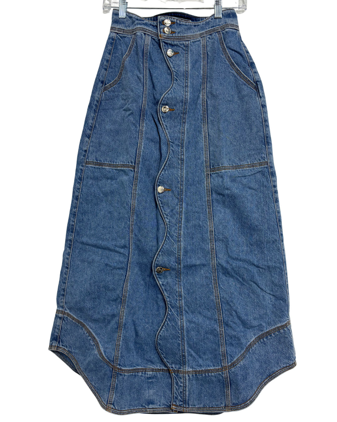 Farm Rio Medium Wash Denim Wave Button-Front Maxi Skirt