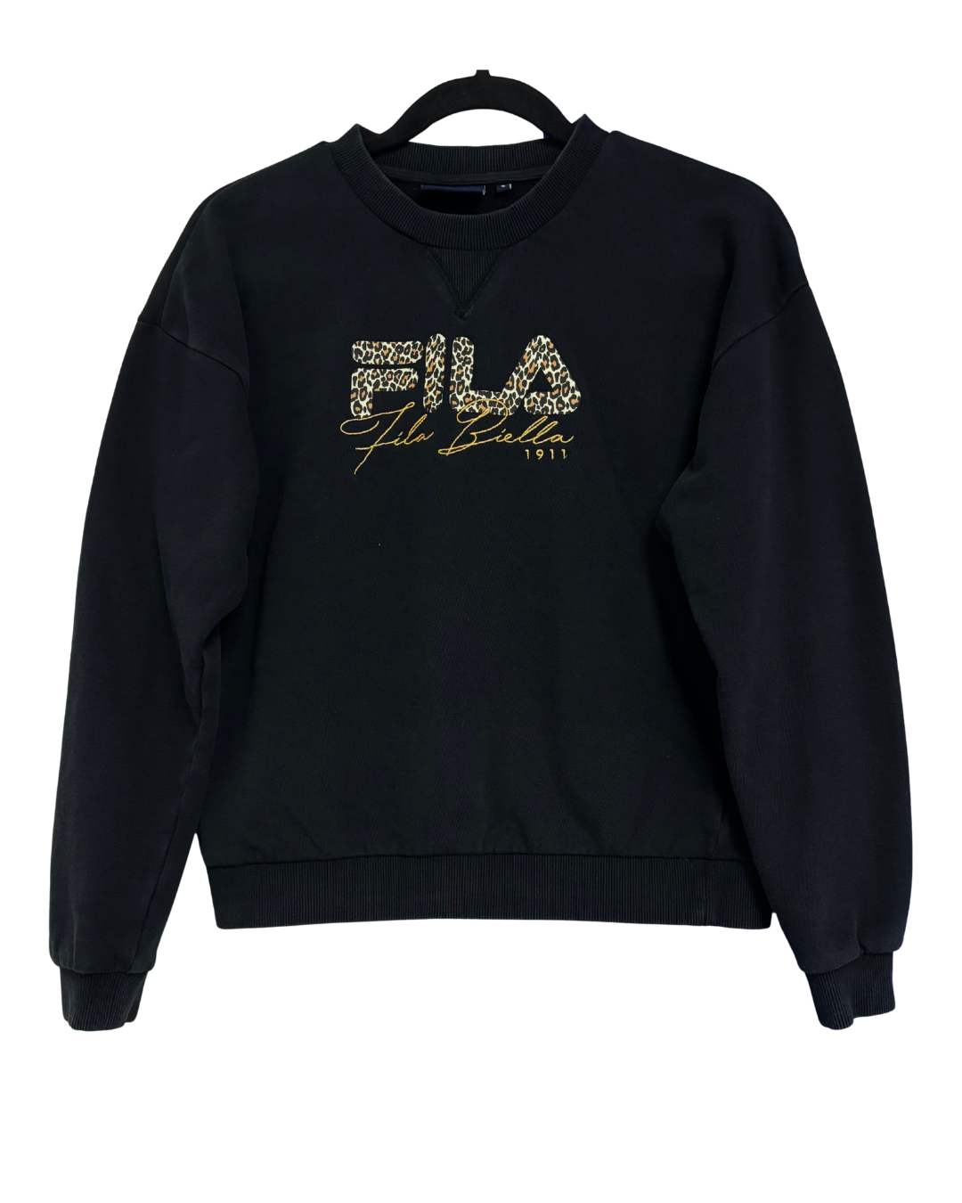 FILA Black Leopard Print Graphic Crewneck Sweatshirt