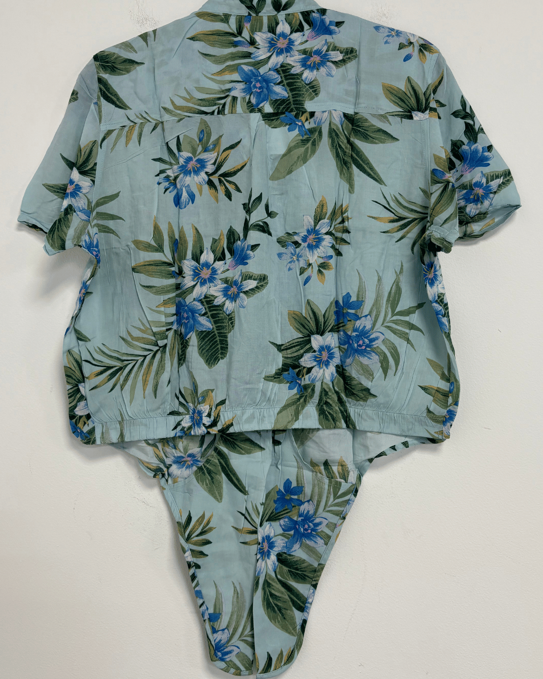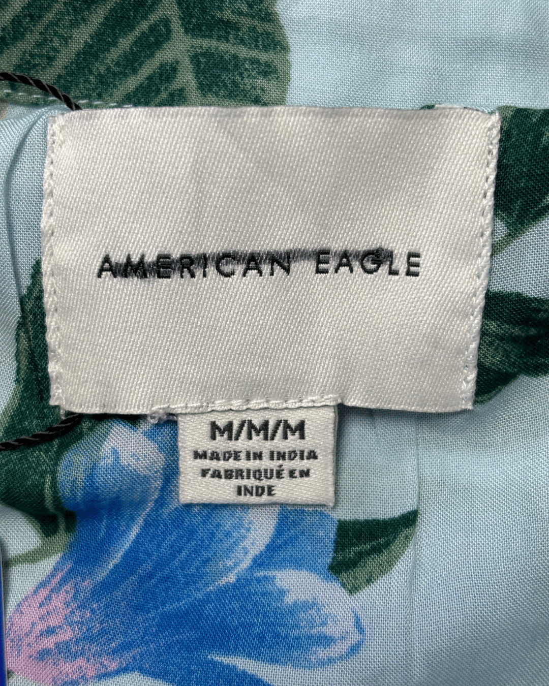 American Eagle Floral Pattern Short Sleeve Button-Up Shirt Aloha Style