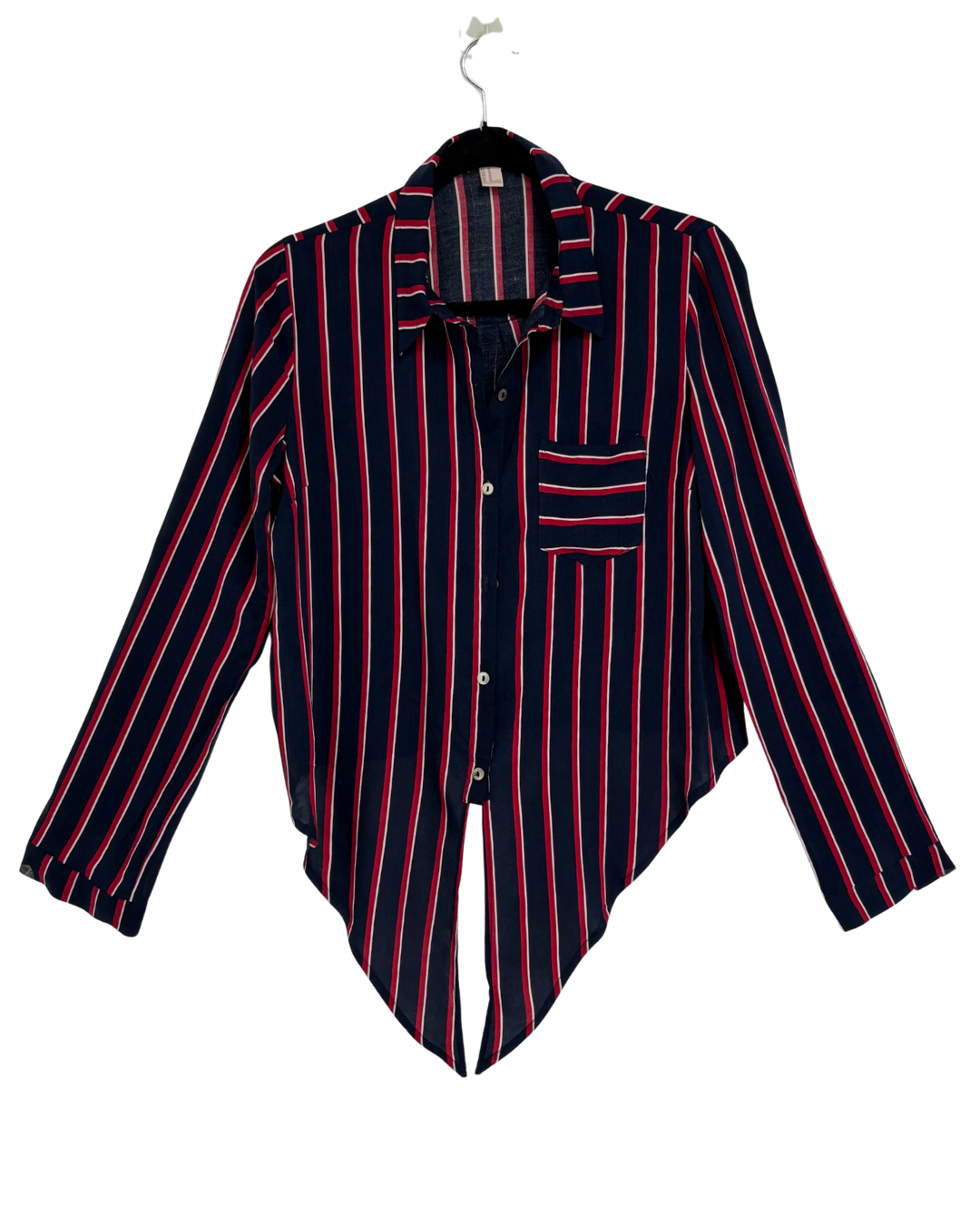 Forever 21 Navy, Red & White Striped Open Tie-Back Shirt