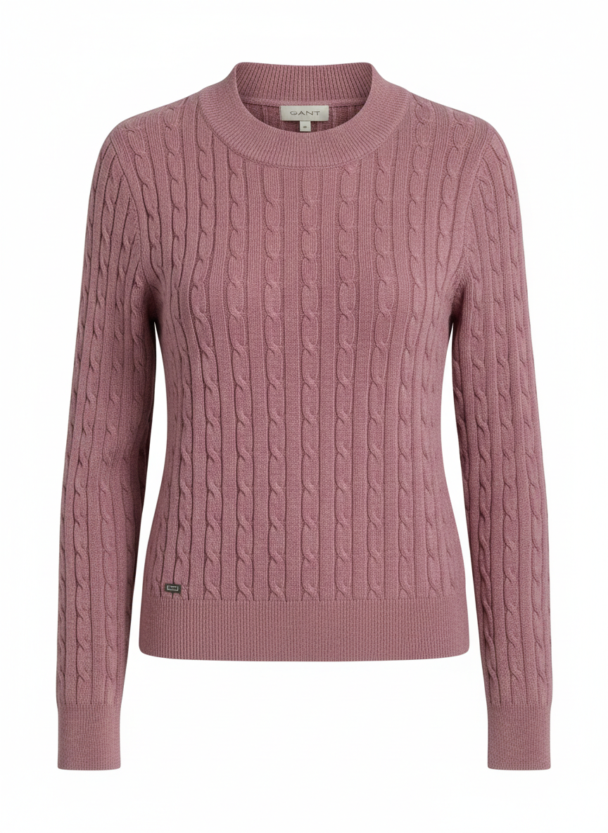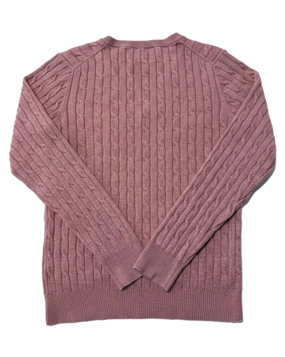 GANT Pink Cable Knit V-Neck Stretch Cotton Sweater