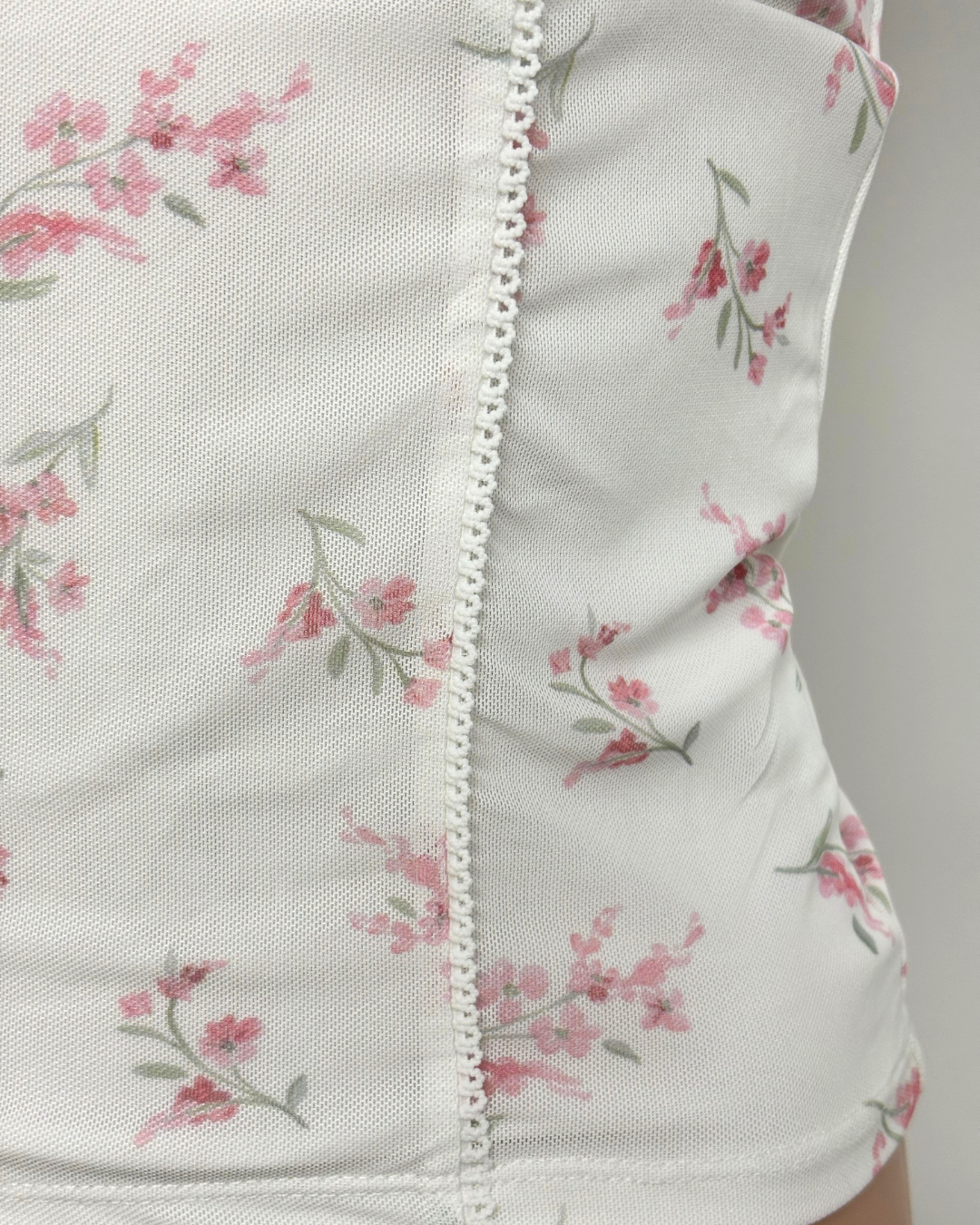 Glassons White & Pink Floral Corset Style Sweetheart Coquette Top
