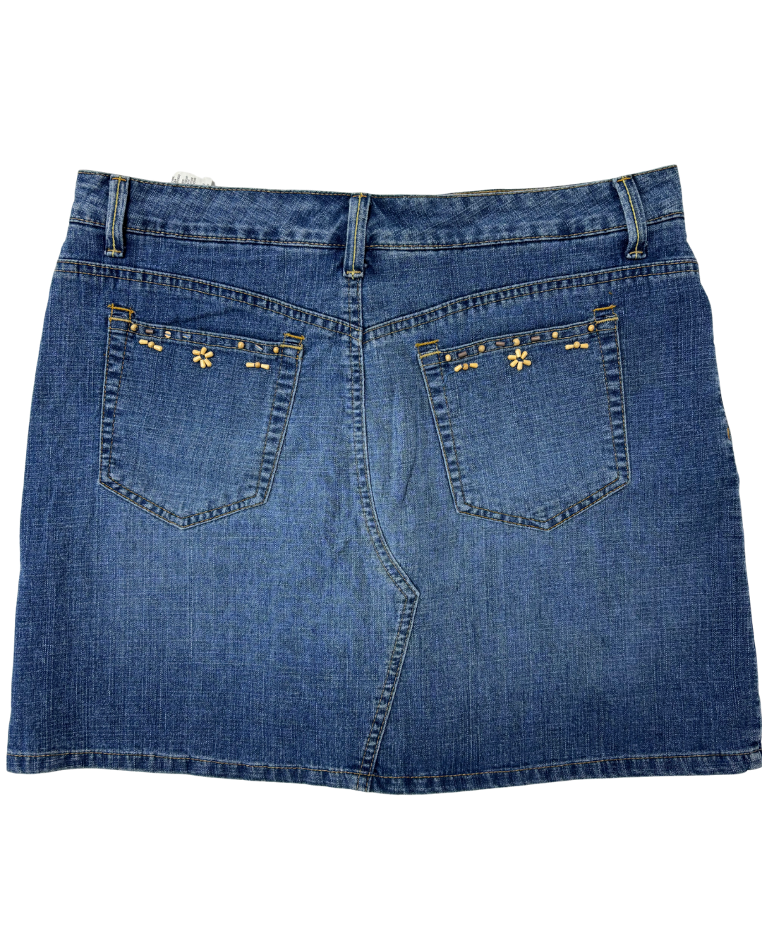 Gloria Vanderbilt Mid-Wash Denim Beaded Flower Detail Mini Skirt