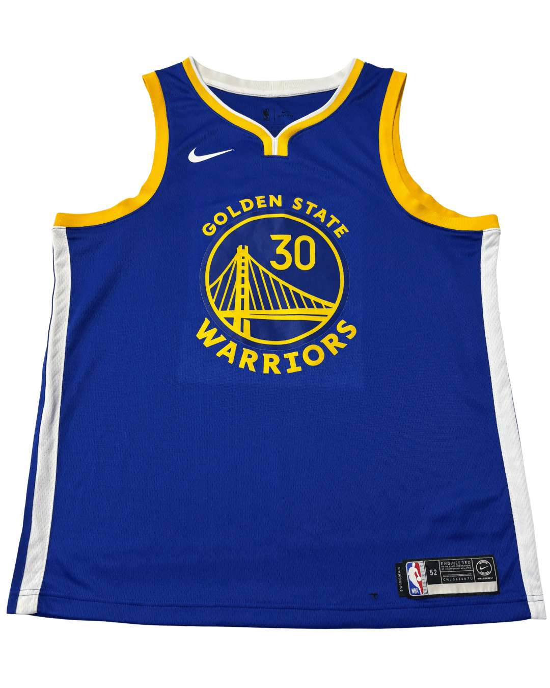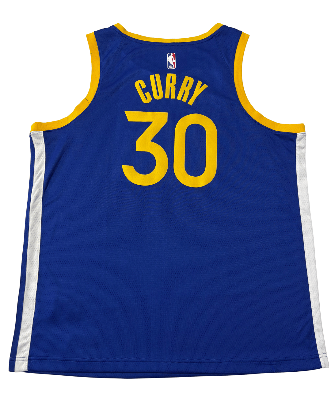 Show your Golden State Warriors pride with this vibrant blue Stephen Curry #30 Icon Edition Swingman Jersey. Designed for performance and style, this NBA basketball jersey features the iconic Golden State Warriors logo on the front and Curry's name and number on the back. Crafted from breathable fabric, it's perfect for both on-court action and fan wear. As is typical for basketball jerseys, the length is extended by approximately 2 inches for a comfortable and authentic fit. This unique piece is a must-have for any basketball enthusiast.