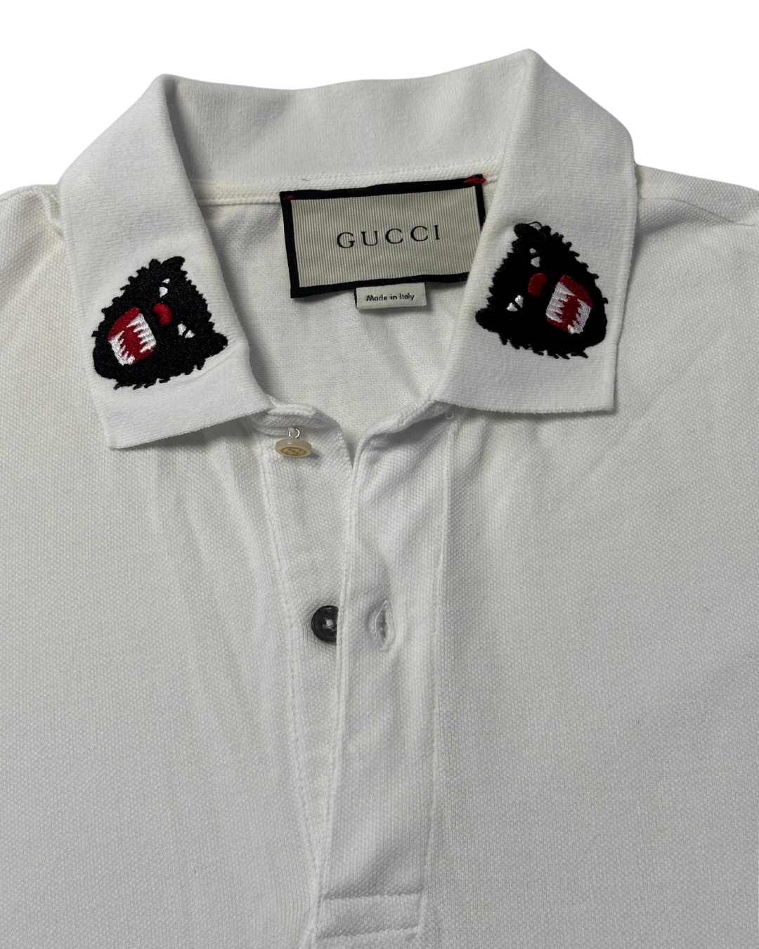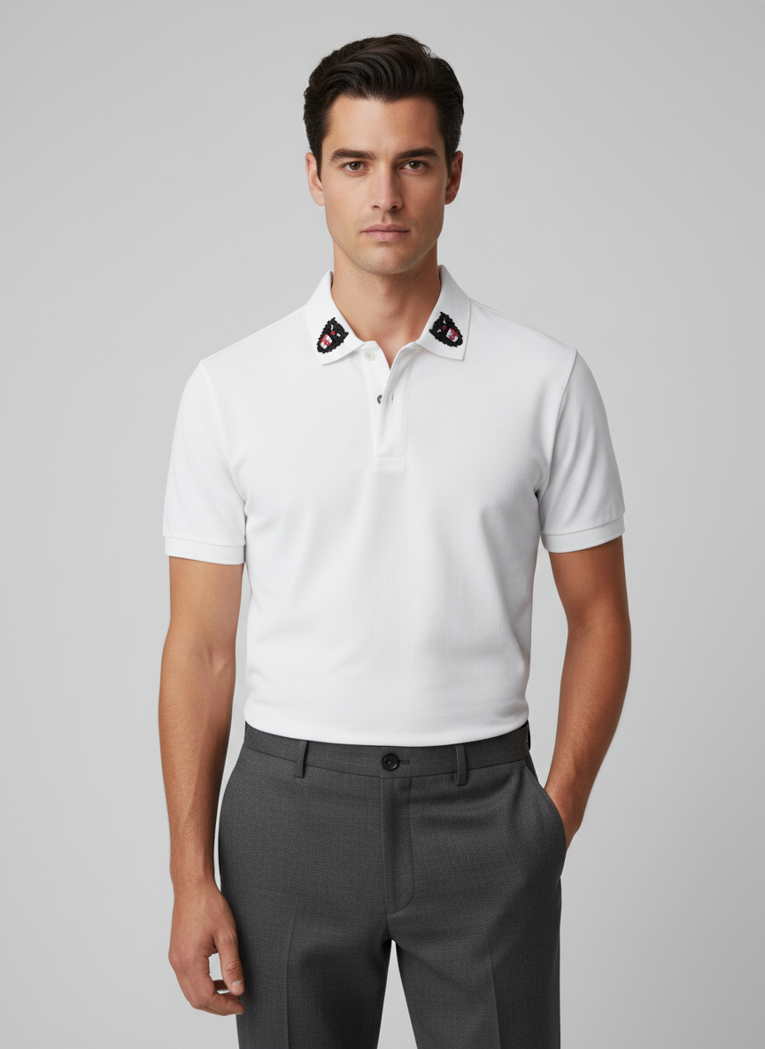 Gucci White Wolf Head Embroidered Polo Shirt