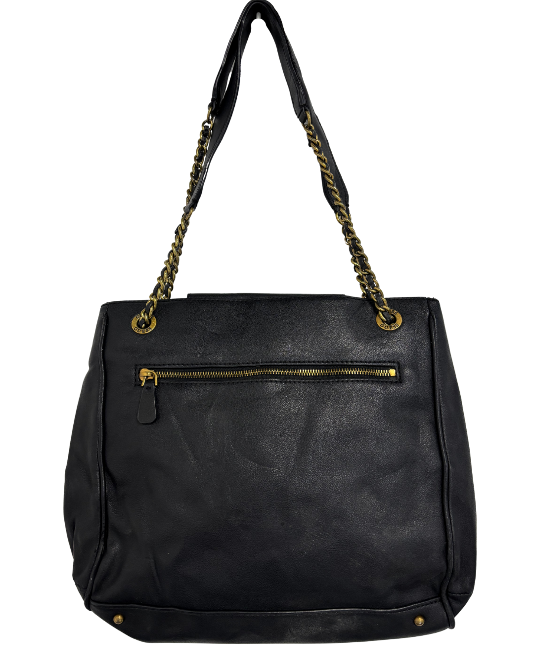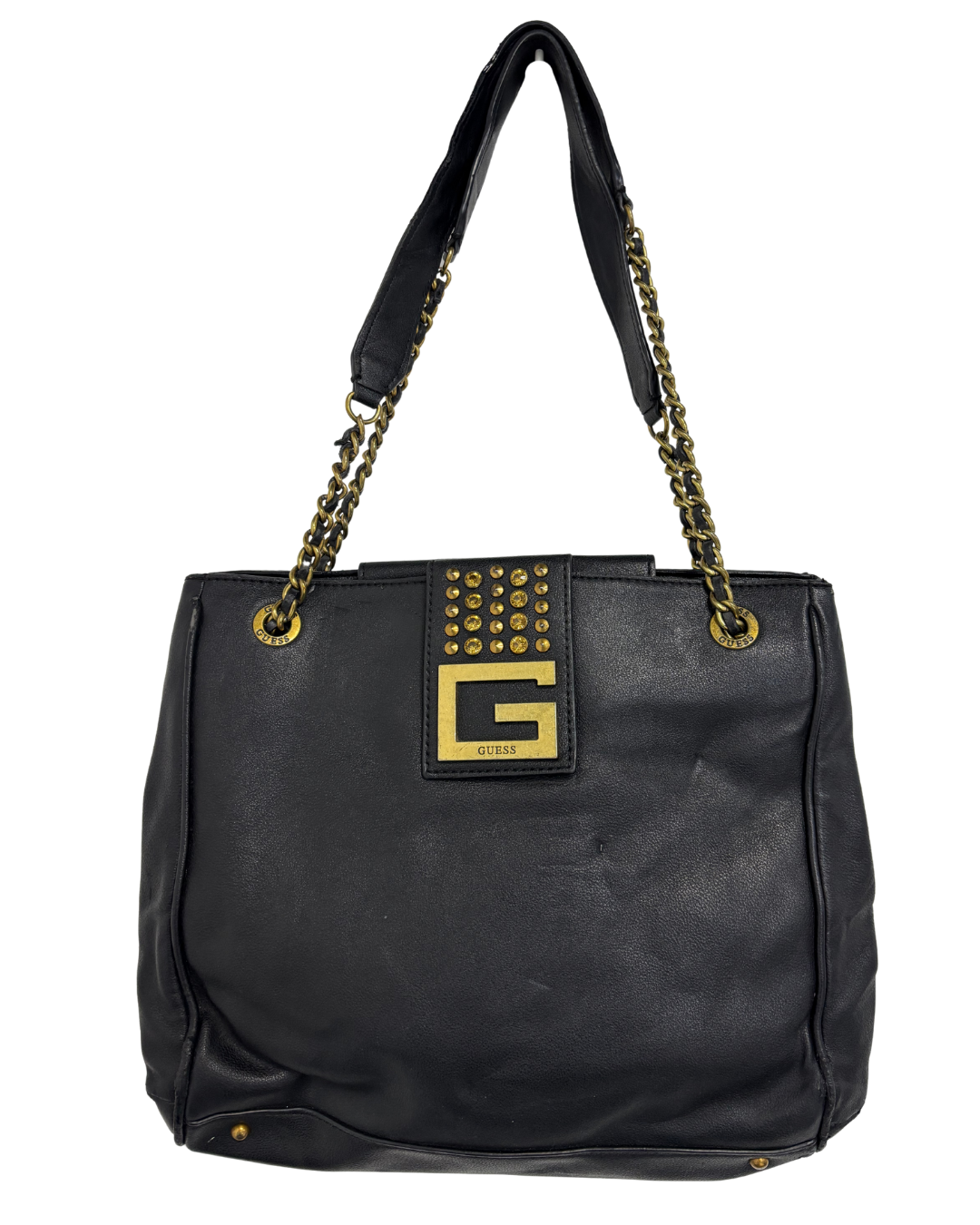 GUESS Black Faux Leather Studded G-Logo Tote Bag
