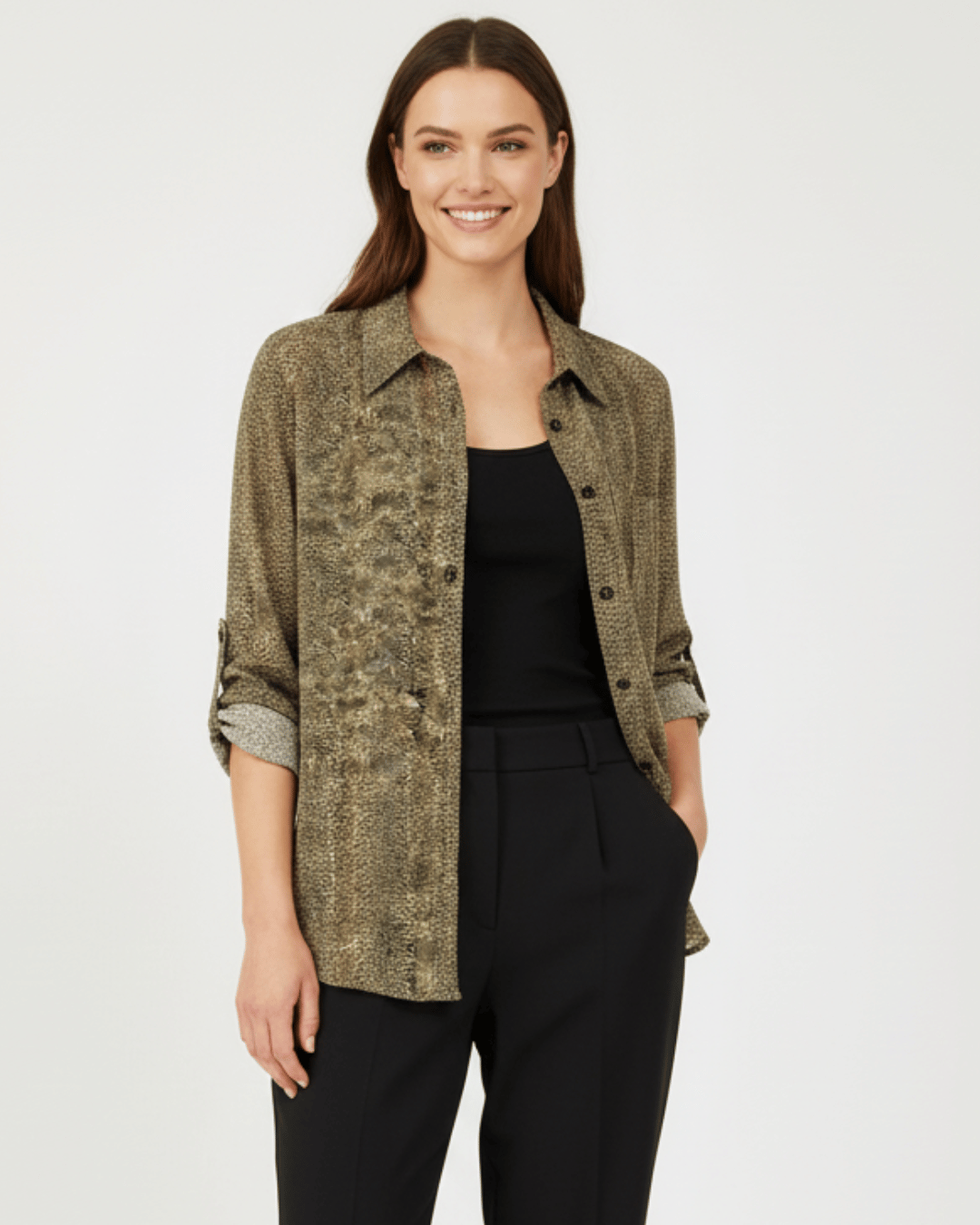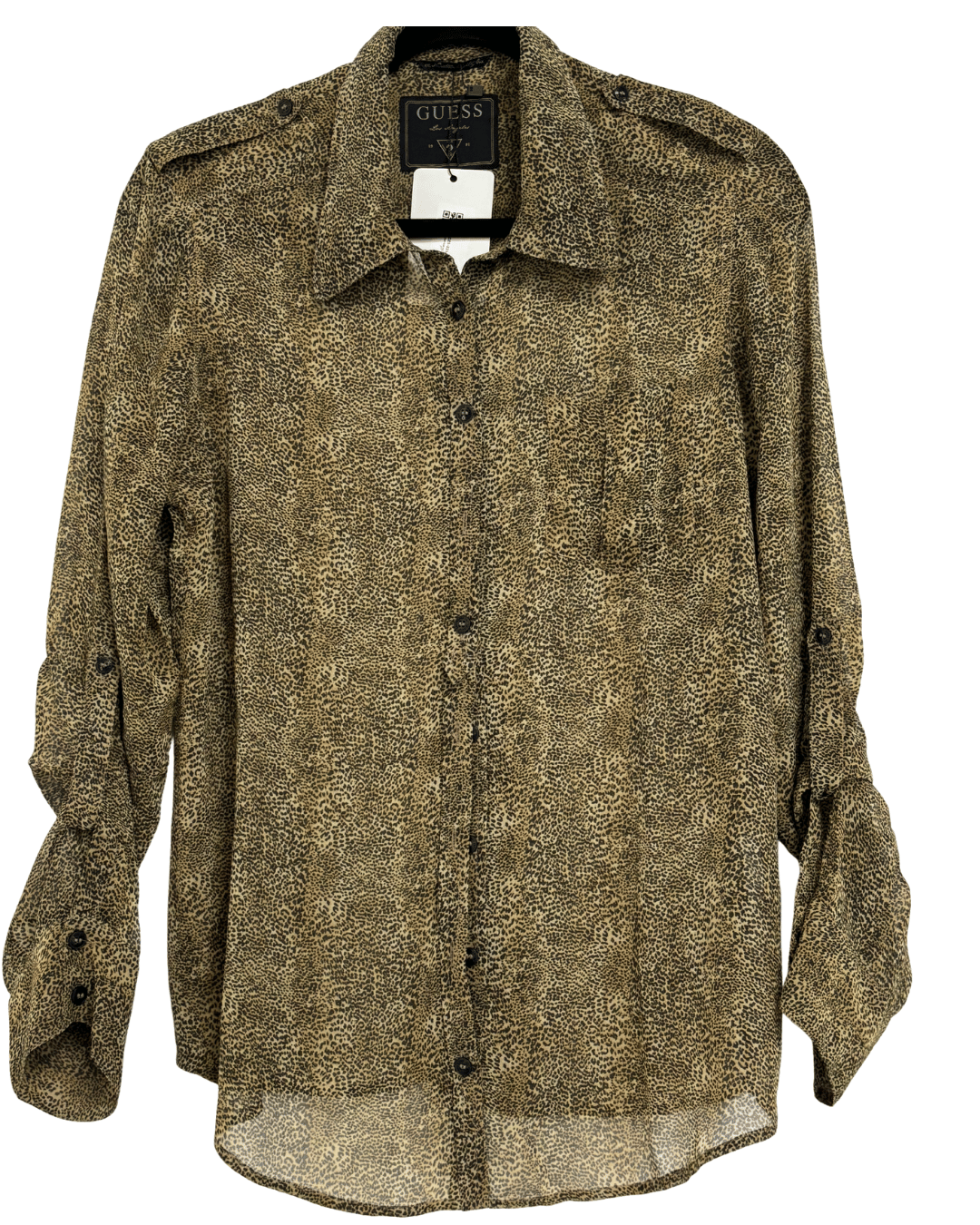 GUESS Leopard-Print Chiffon Button-Up Shirt Brown