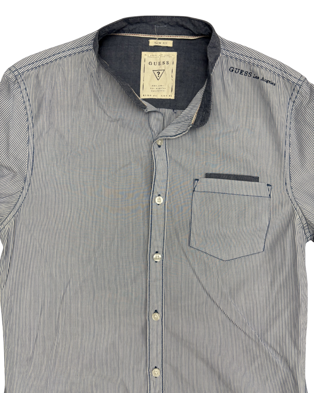 Product form Guess Slim Fit Striped With Band Collar Shirt - XXL Measurements:Pit To Pit: 26Length: 27 Brand Size: NA Dhs50.00 Quantity Add to cart Washed & Ready to WearFree shipping on all orders above 100 AEDNext day delivery