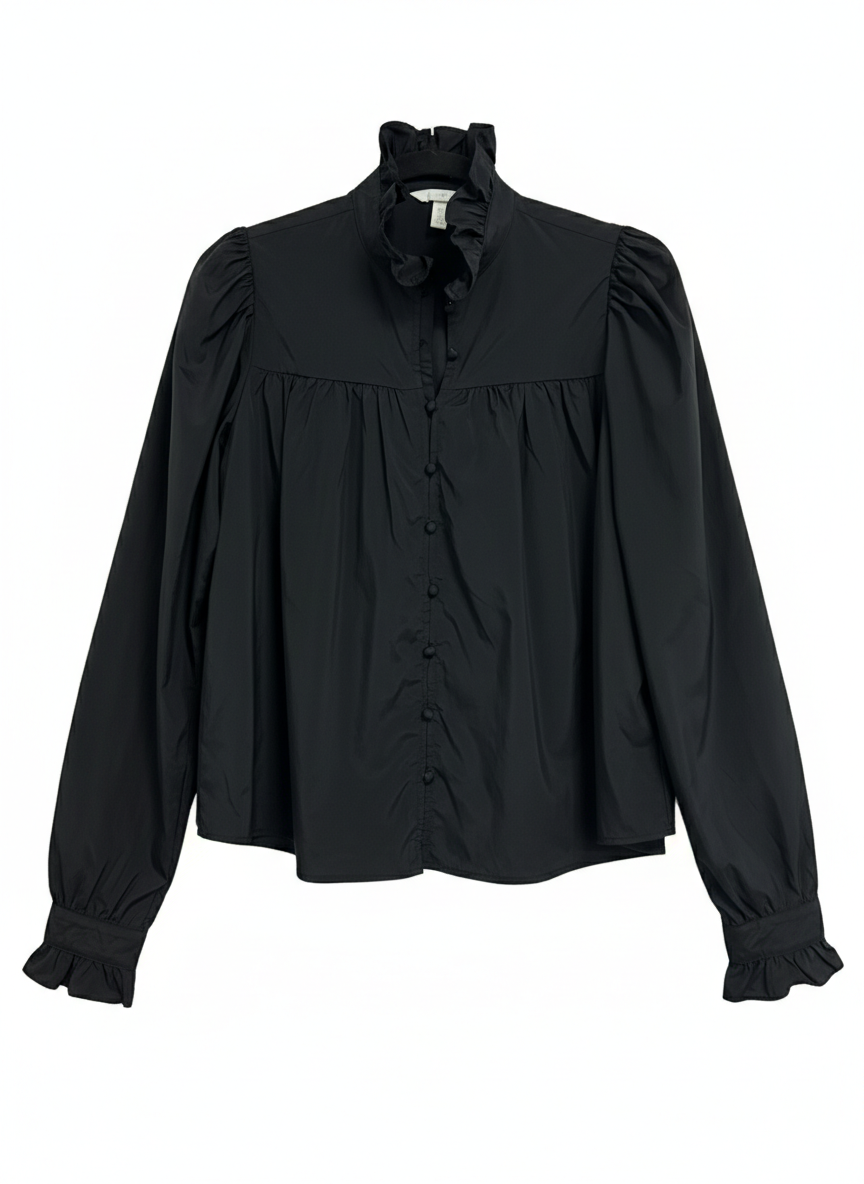 H&M Black Ruffle Collar Puff Sleeve Blouse