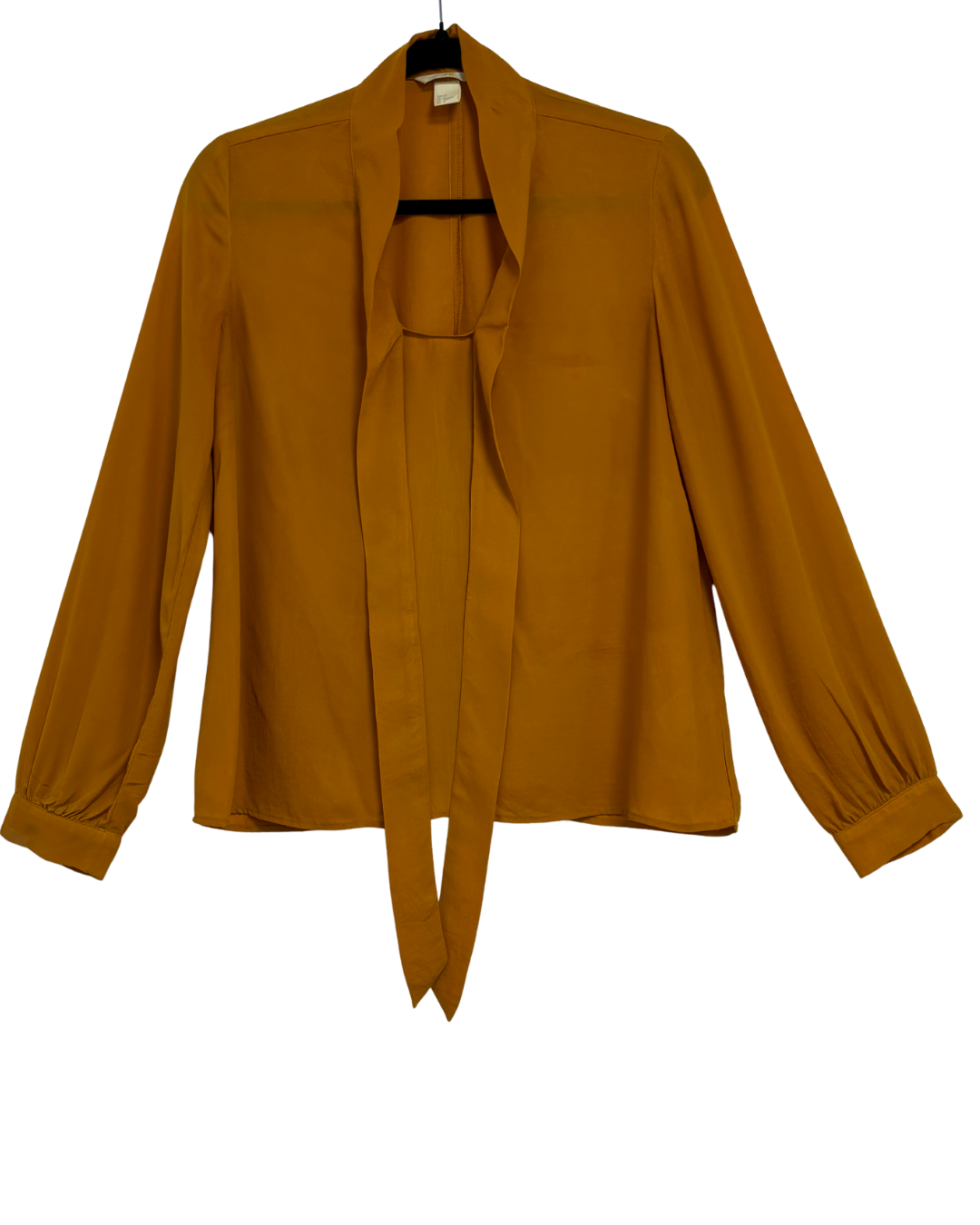 H&M Mustard Yellow Tie-Neck & Hem Blouse