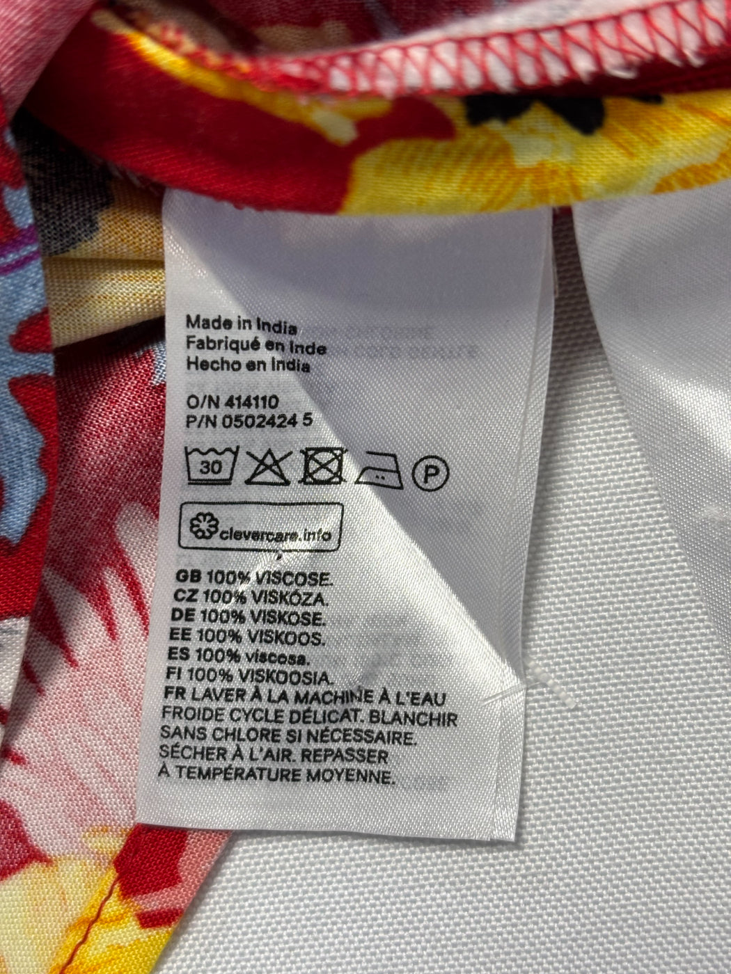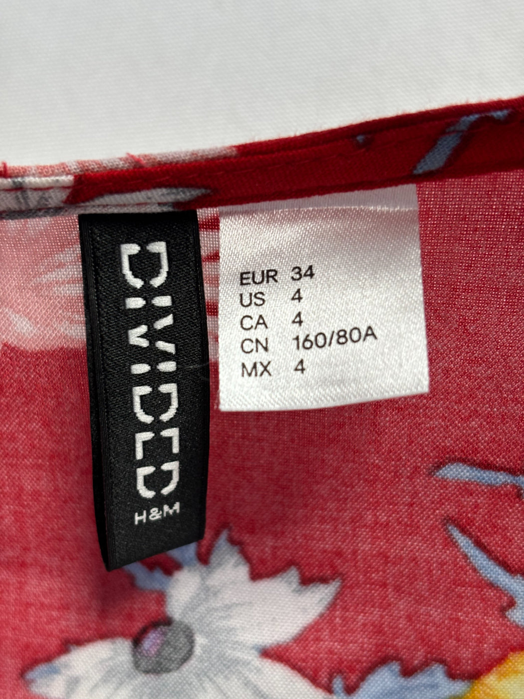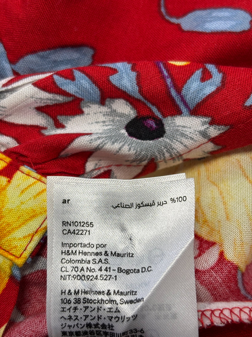 H&M Red Floral Button-Up Short Sleeve Crop Top