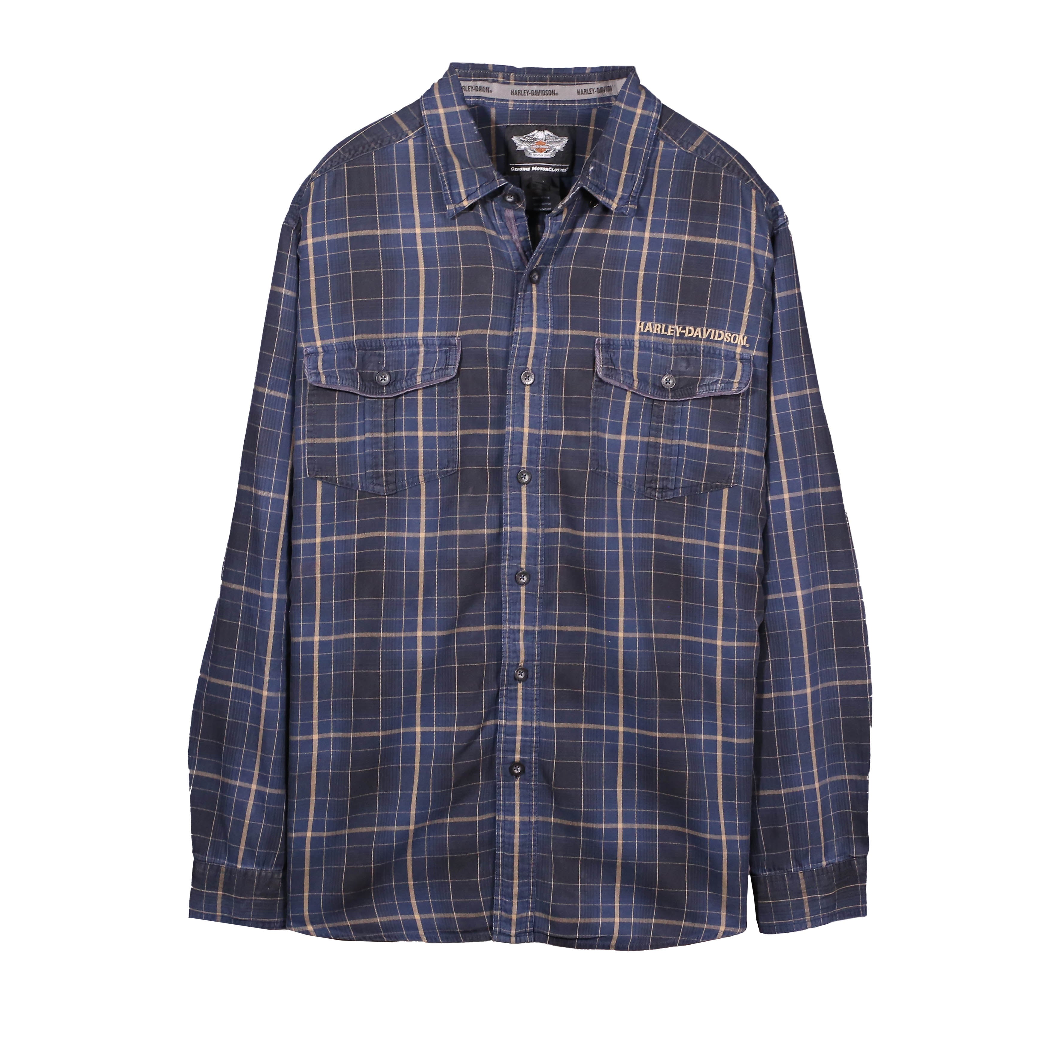 Command respect in this Harley-Davidson Button Up Long Sleeve Plaid Shirt in bold blue. The classic plaid pattern channels authentic biker aesthetics while the sturdy construction handles the demands of real riders. Long sleeves offer protection and layering versatility, whether you're cruising highways or hitting the town. The Harley-Davidson name carries weight—a symbol of freedom, power, and uncompromising attitude. This shirt delivers the rugged style and durability that define motorcycle culture.